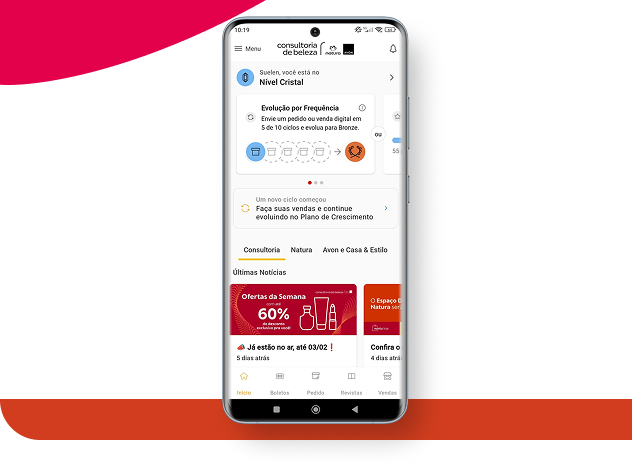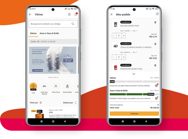 navegue pela vitrine de produtos Natura ou Avon