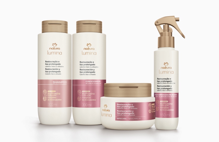 A linha Lumina Restauração e Liso Prolongado deixa seus cabelos 4 vezes mais lisos por até quatro dias! Isso porque sua Tecnologia Bioproteína Tripla Ação junto ao Complexo de Aminoácidos ajudam a repor a massa perdida pelos fios.