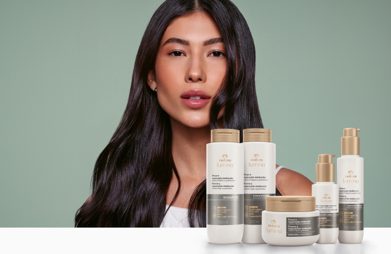 Experimente a linha Lumina Força e Reparação Molecular, que limpa suavemente, mantém a saúde do couro cabeludo e deixa os fios 5 vezes mais fortes! Isso porque sua Tecnologia Bioproteína Tripla Ação repara as ligações internas do fio a nível molecular.