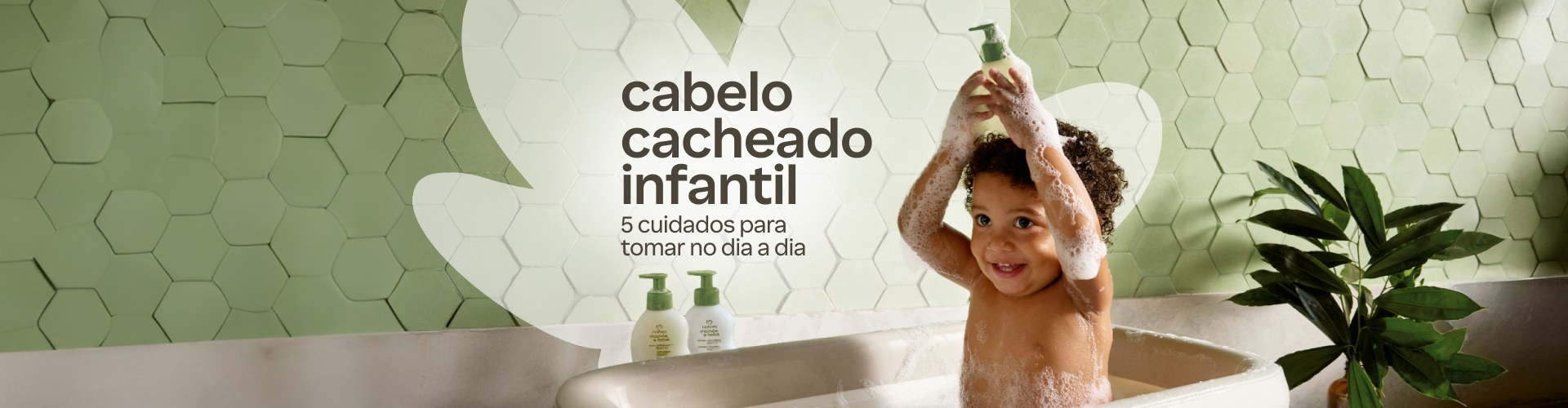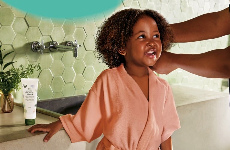 Trate o cabelo cacheado infantil com carinho e segurança. Escolha Natura!