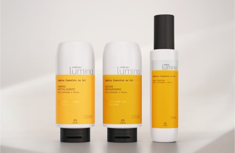 A linha Lumina para Cabelos Expostos ao Sol é inclusive uma ótima pedida para te acompanhar em viagens durante as épocas mais quentes do ano, já que seus produtos limpam, protegem e restauram os fios dos danos causados pelo sol, praia e piscina, sendo um aliado indispensável na rotina de cuidados com cabelo loiro.