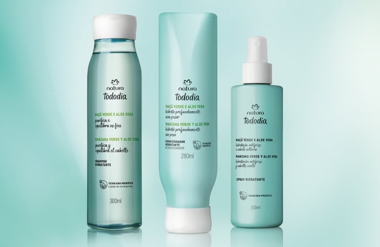 O Kit Tododia Maçã Verde e Aloe Vera, por exemplo, proporciona nutrição e hidratação profunda para os cabelos e vem com 4 produtos: shampoo, condicionador, máscara e spray hidratante. Com Tecnologia Prebiótica, ele cuida dos fios de maneira completa, da raiz às pontas.