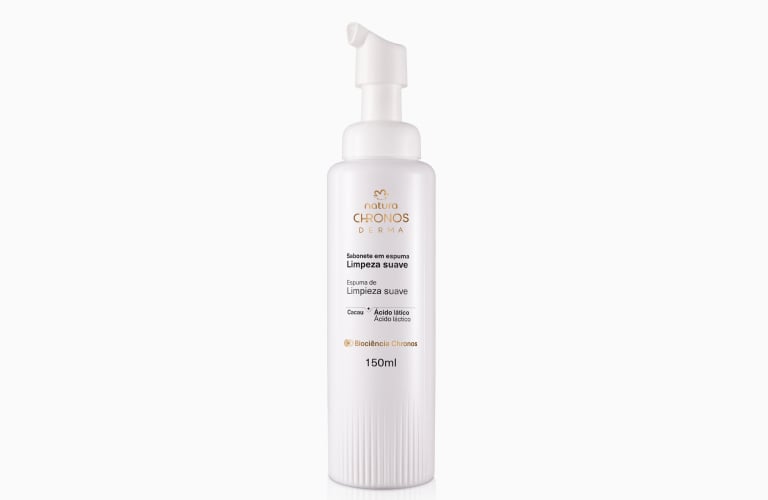 - Sabonete em Espuma Limpeza Suave Chronos Derma: limpa de maneira eficaz e mantém a hidratação natural da pele, pois forma um filme delicado sobre ela;