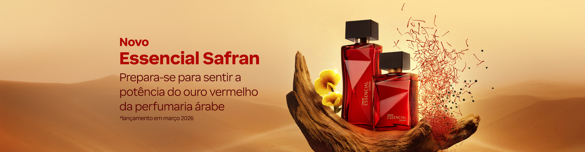 Essencial Safran inova ao trazer o açafrão – um dos ingredientes mais raros e caros da perfumaria árabe – como nota principal, um feito inédito nas composições da Natura, junto ao ishpink, conhecido como a canela amazônica. O açafrão é conhecido como o “ouro vermelho”, extraído manualmente dos estigmas de uma flor lilás em processo artesanal, resultando em um símbolo de luxo e sofisticação. O lançamento, que alcançou mais de 90% de aprovação em testes sensoriais, promete uma experiência olfativa intensa e opulenta, garantindo 14 horas de duração na pele.