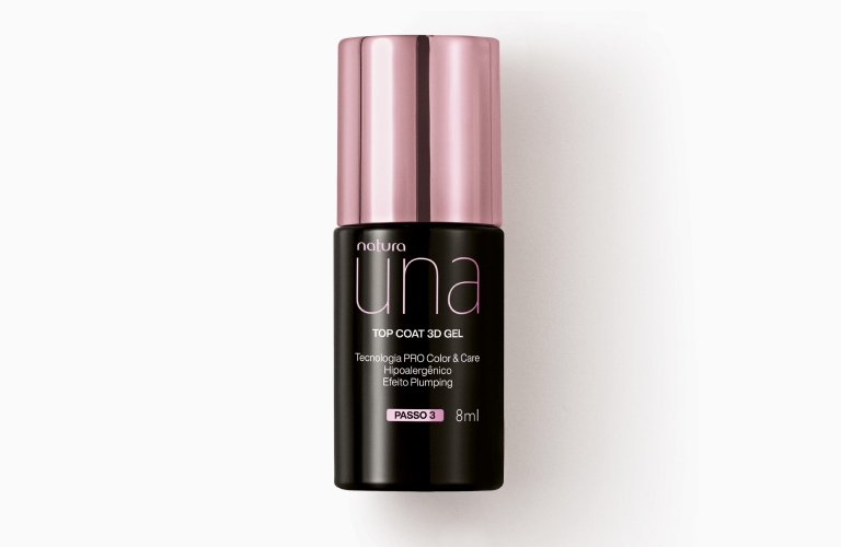 Para finalizar sua busca pelo melhor top coat, apresentamos o Top Coat 3D Gel Una. Com ele, você conquista o efeito gel que tanto ama sem precisar de cabine!