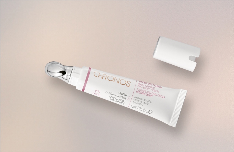 O Sérum Intensivo Multi Clareador, de Chronos, com 10% de vitamina C, clareia olheiras e áreas escurecidas, além de uniformizar a tonalidade da pele.