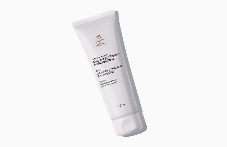 Nossa sugestão é o sabonete Limpeza Purificante Antioleosidade Chronos, que limpa, desobstrui poros e remove imediatamente o excesso de oleosidade. Sua textura em gel não resseca a pele e mantém a hidratação natural.