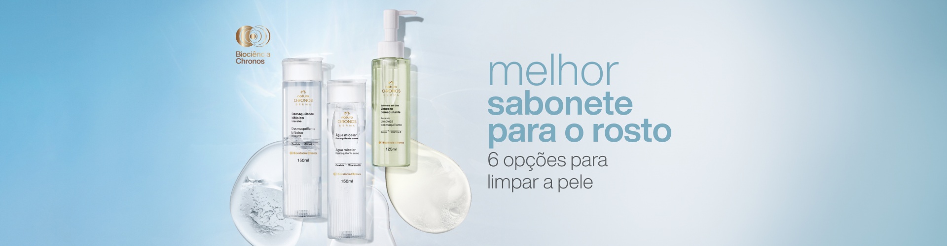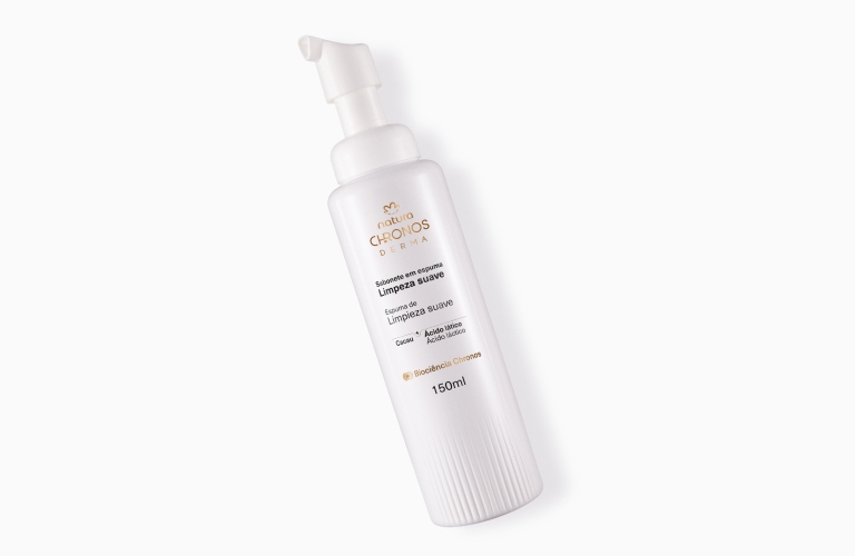 O sabonete líquido é conhecido por sua praticidade e higiene. Geralmente, vem em embalagens com pump – como o Sabonete em Espuma Limpeza Suave Chronos Derma – o que facilita a dosagem e o deslocamento, caso você precise levar dentro da bolsa ou do nécessaire.