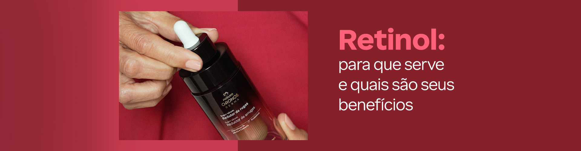 Um destaque dessa linha é o Super Sérum Redutor de Rugas Chronos Derma, que tem retinol em sua composição e estimula a produção de colágeno, elastina e ácido hialurônico. Ideal para quem busca um tratamento completo para amenizar os sinais de envelhecimento.