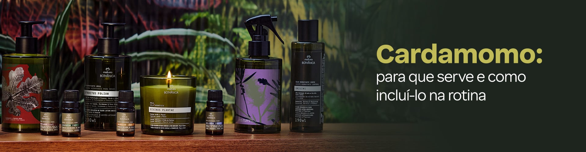 Aqui na Natura você encontra diferentes opções de produtos e refis para casa que transformam a atmosfera. Na linha Bothânica, por exemplo, há difusores, velas aromáticas, sprays de ambiente, sabonetes líquidos e óleos corporais que te conectam consigo e com o ambiente!