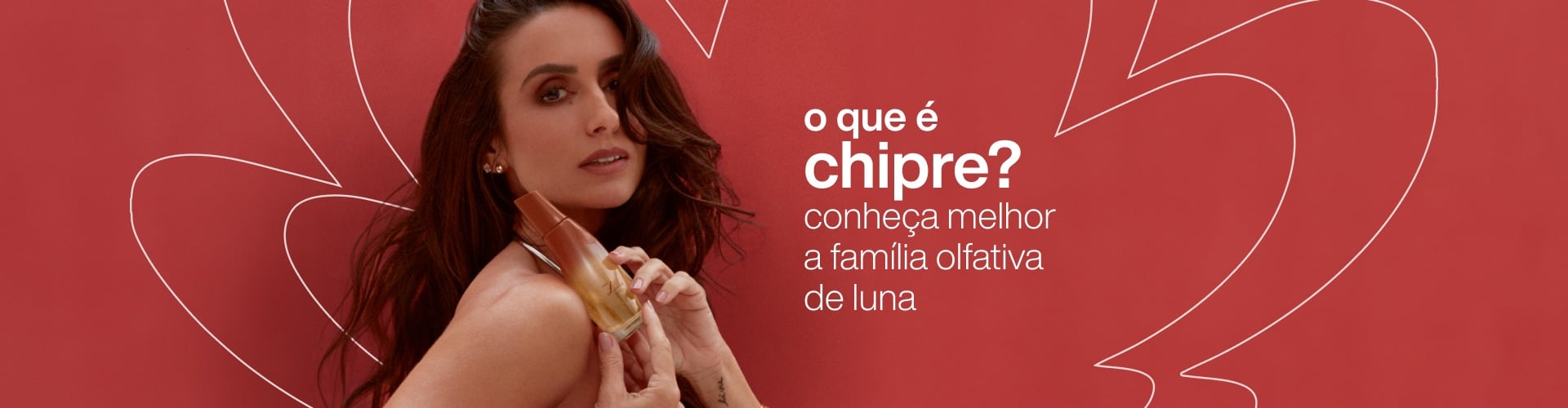 Ela conta que as fragrâncias Luna são uma interpretação desse caminho olfativo: "a diferença do chipre brasileiro é que adicionamos frutas para deixá-lo mais alegre, e flores para deixá-lo mais sensual.”