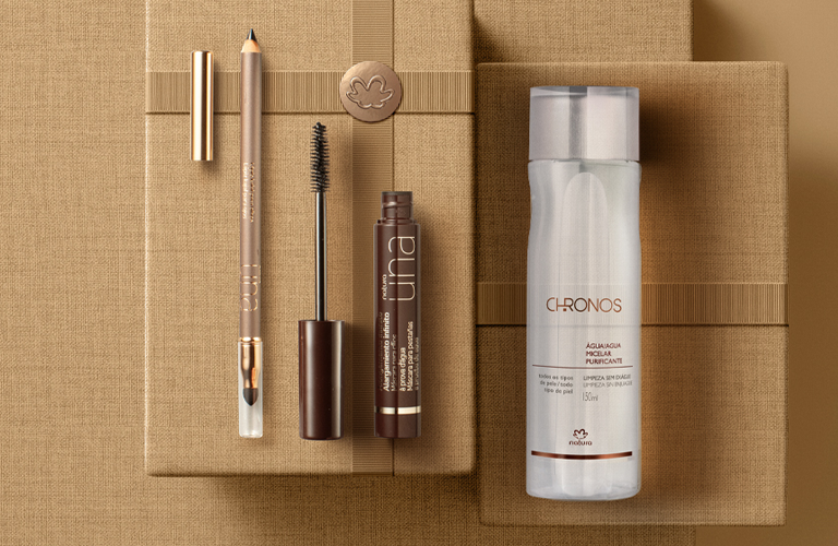 Um presente completo que entrega beleza e cuidado para a sua avó. O kit conta com máscara de cílios e lápis kajal para as avós que amam uma make. Além disso, também acompanha o demaquilante da linha Chronos.