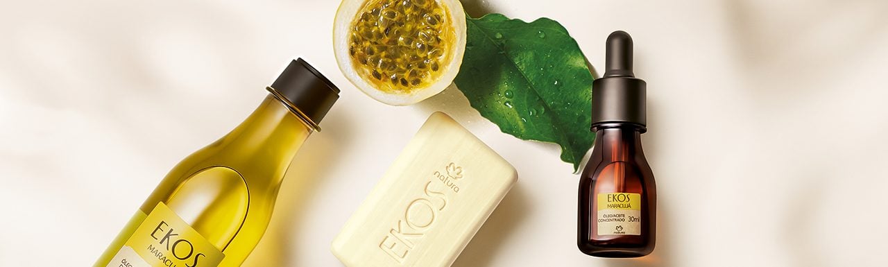 O óleo e o extrato aromático fazem com que os produtos da linha Ekos Maracujá promovam uma hidratação calmante e perfumação para a pele.