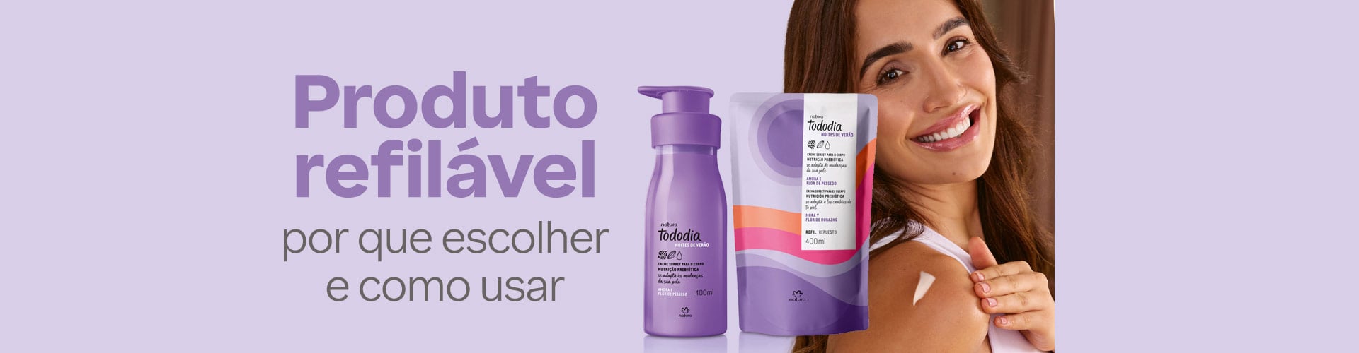 Aqui na Natura, essa visão orienta o desenvolvimento dos nossos cosméticos, por isso você encontra opções de refil em todas as categorias, do corpo e banho aos acessórios para casa.