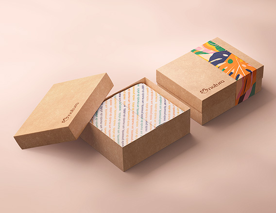 as sacolas ainda contam com papel de seda estampado com símbolo da Natura