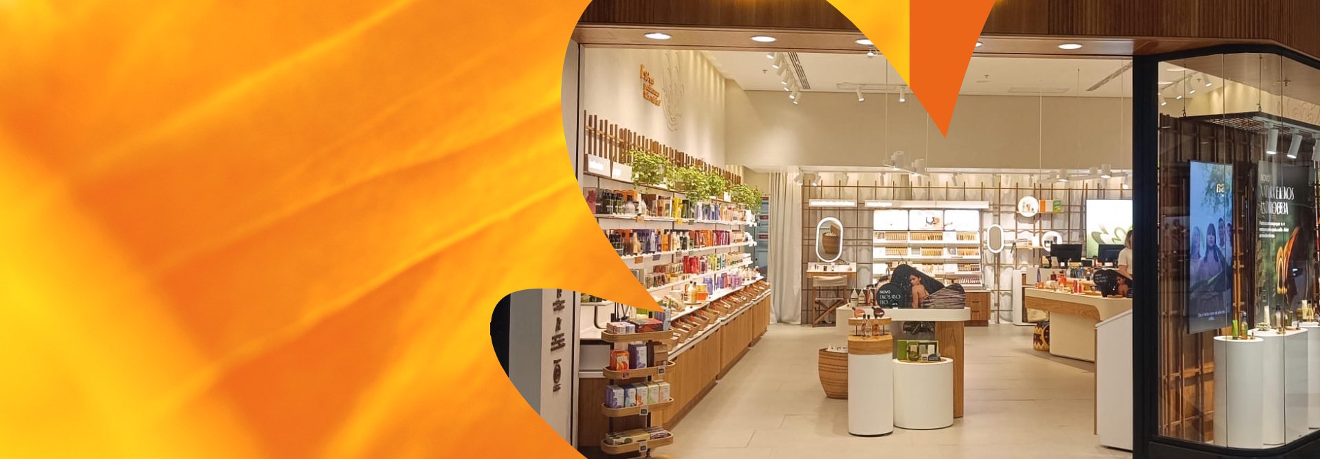 As lojas da Natura apresentam portfólio amplo e selecionado, com produtos de diferentes categorias, expostos em um único lugar, para que os consumidores possam conhecer experimentar à vontade.