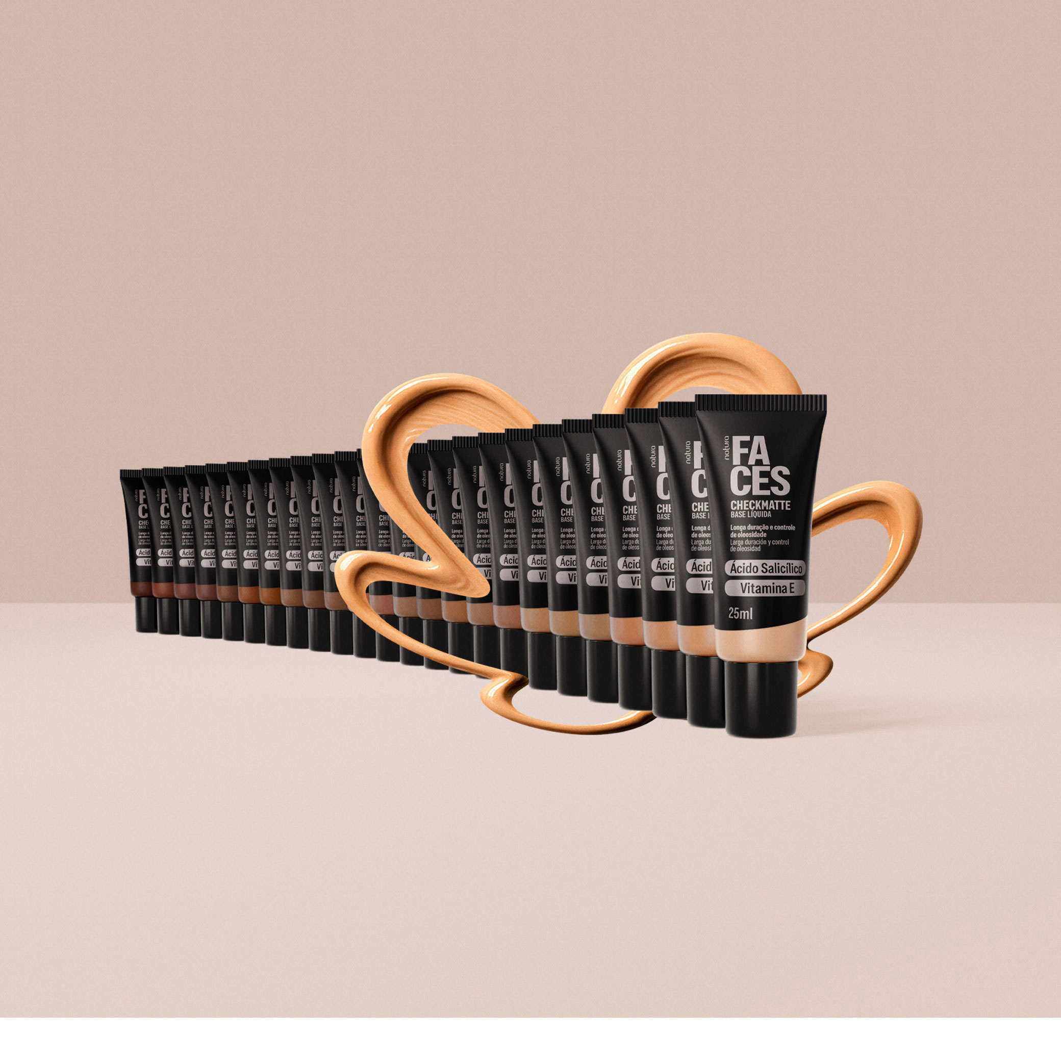 base com acabamento matte, cobertura média e diferentes tons que valorizam a sua pele.