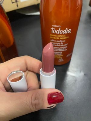 O efeito na boca não é toque seco, ele fica normal, achei a cor do produto diferente da anunciada, ainda assim a cor é bonita, senti que hidrata os lábios.
