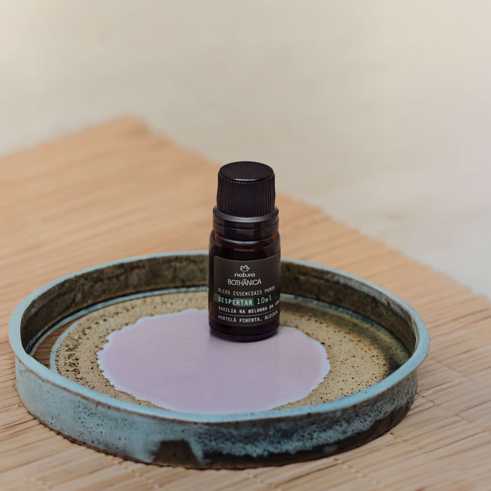 adicione de 5 a 10 gotas do blend de óleos essenciais na esfera aromática do difusor Natura Bothânica. dilua na mesma proporção de água para difusor elétrico.