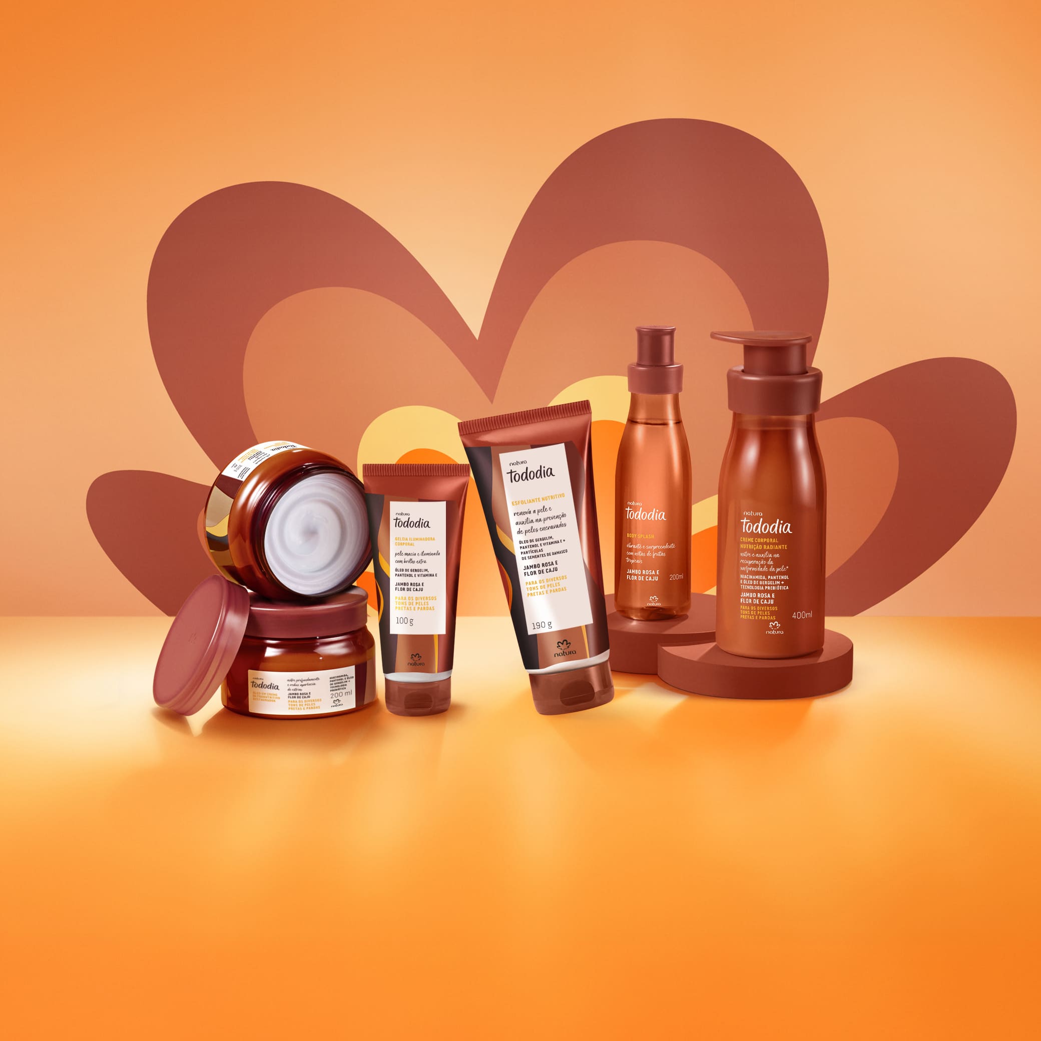 Natura celebra a potência e brilho únicos das peles pretas e pardas em seus mais diversos tons. Tododia Jambo Rosa e Flor de Caju realça na pele a sua beleza com fórmulas e ativos inéditos. uma linha completa para esfoliação suave, nutrição profunda, uniformização de tom e ainda mais radiância.