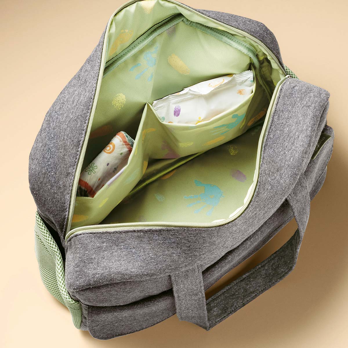 Linda e sofisticada, a Bolsa Mamãe e Bebê acompanha trocador e tem o tamanho ideal para carregar todos os itens essenciais para um passeio com o bebê. Feita em tecido sustentável, possui alça de mão e alça tiracolo regulável, além de suporte para garrafas e vários bolsos com zíper que facilitam a organização. Esta bolsa suporta até 10 kg e pode ser lavada na máquina.