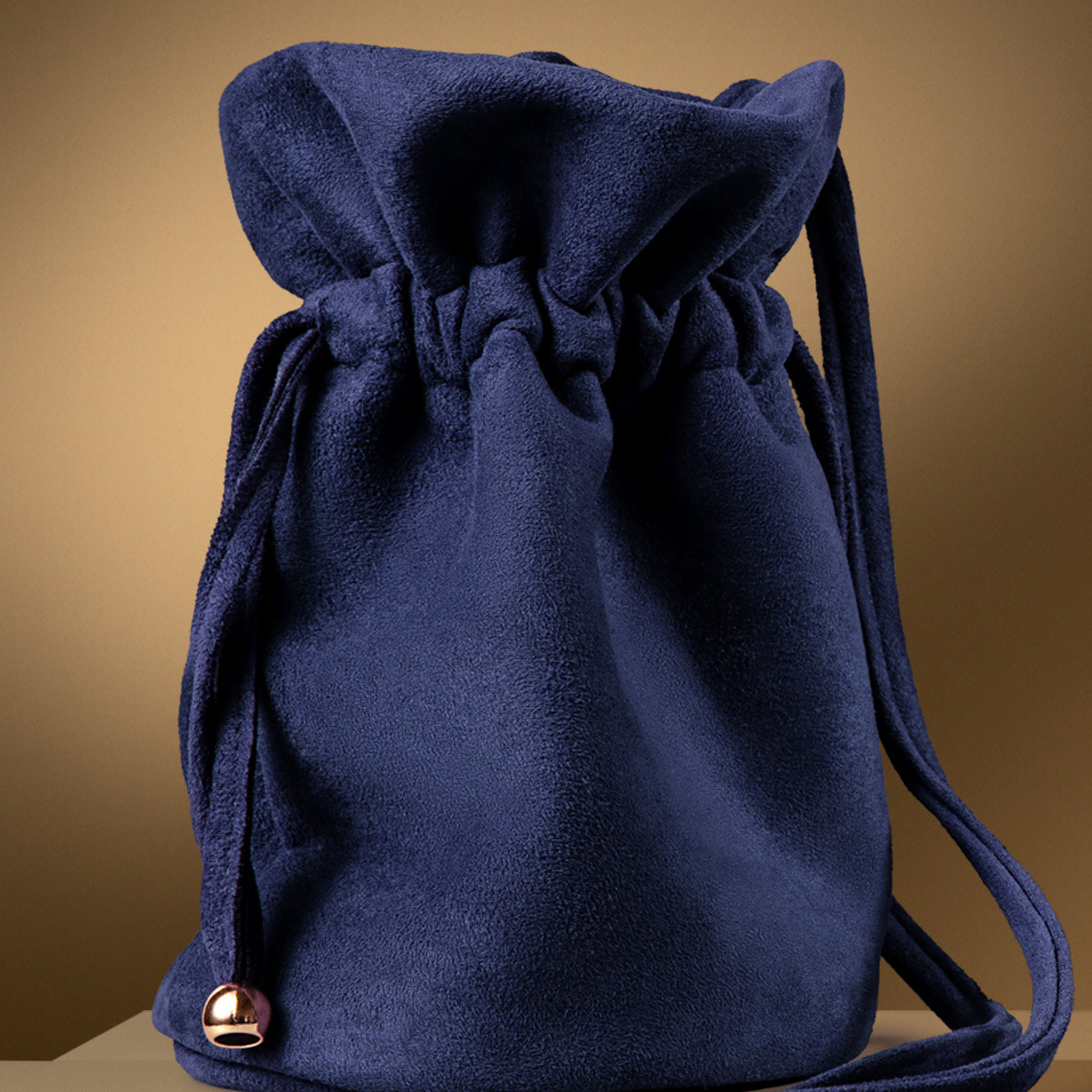 • Em veludo azul sofisticado.