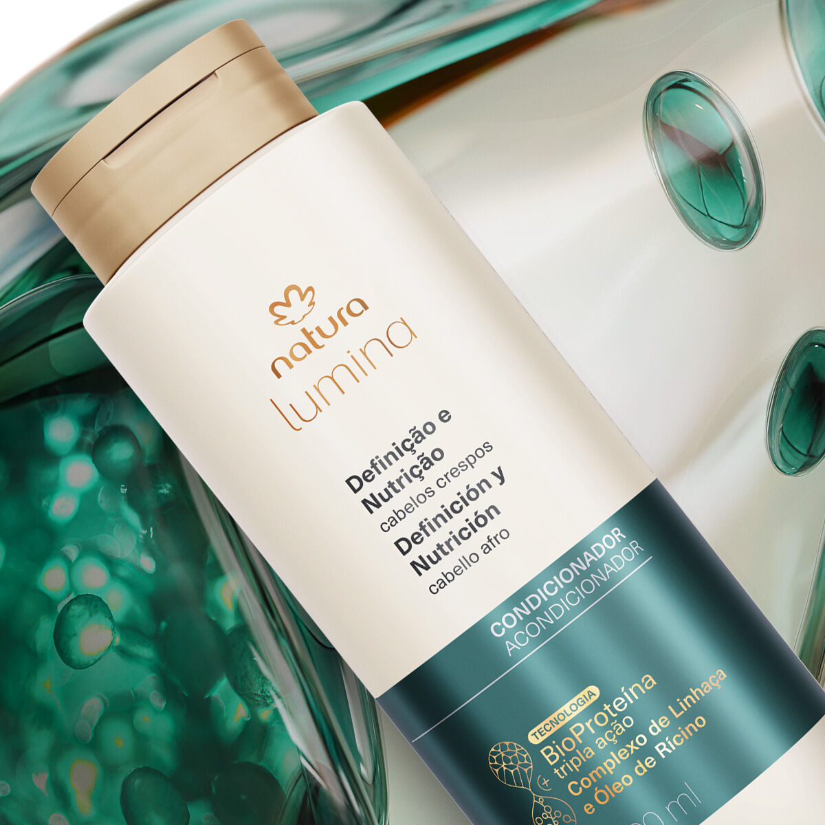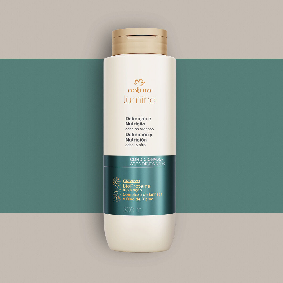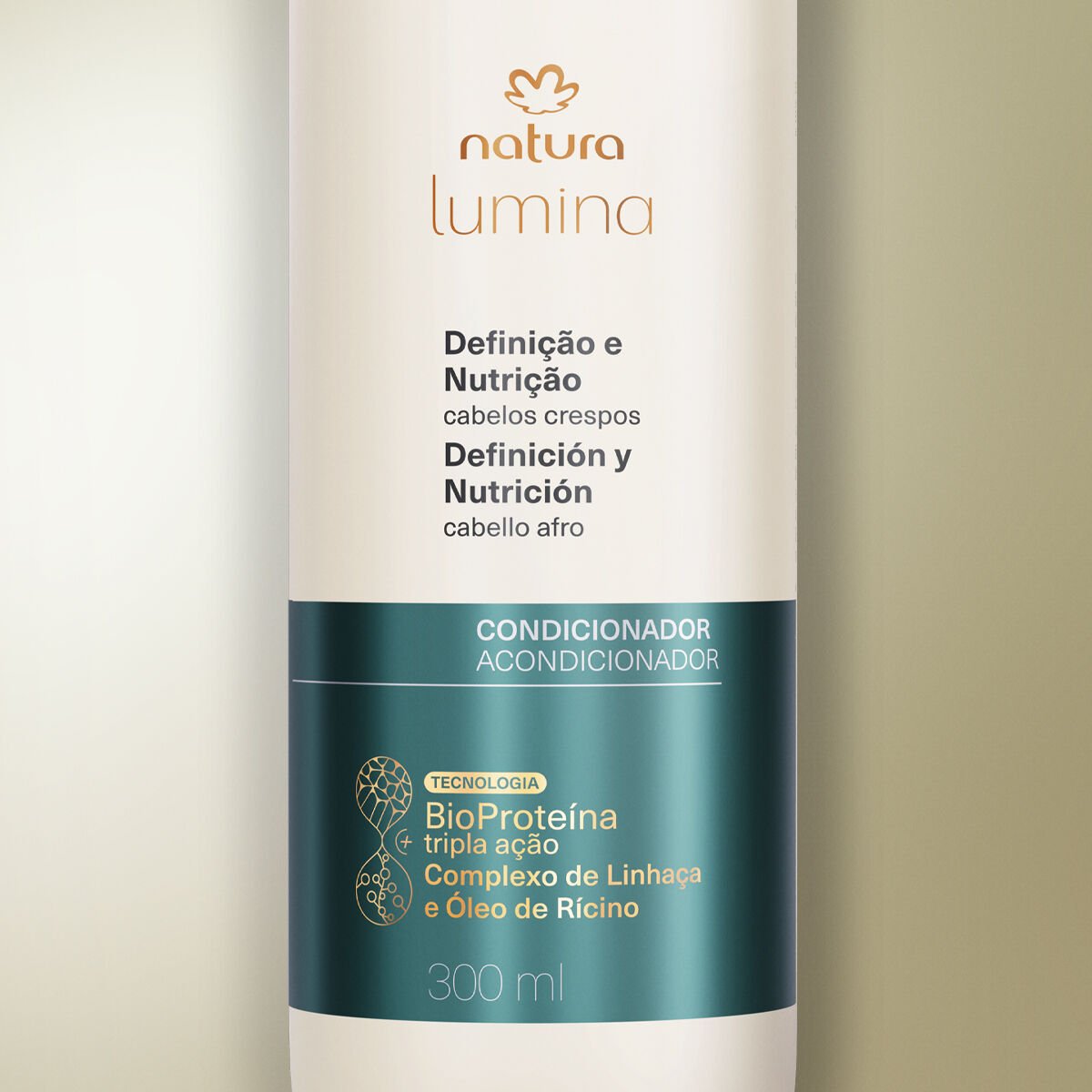 A linha para Cabelos Crespos de Lumina mudou! Agora o seu Sistema de Definição e Nutrição tem novas embalagens, nova fragrância e ainda mais tecnologia para cuidar do seu cabelo. Com BioProteína Tripla Ação e Complexo de Linhaça e Óleo de Rícino, esse sistema promove cabelos crespos até 73% mais definidos e com 2 vezes mais brilho*. O Condicionador Nutritivo para Cabelos Crespos Lumina é um passo essencial nesse ritual, com fórmula que nutre, fortalece e deixa os cabelos 6 vezes mais macios.