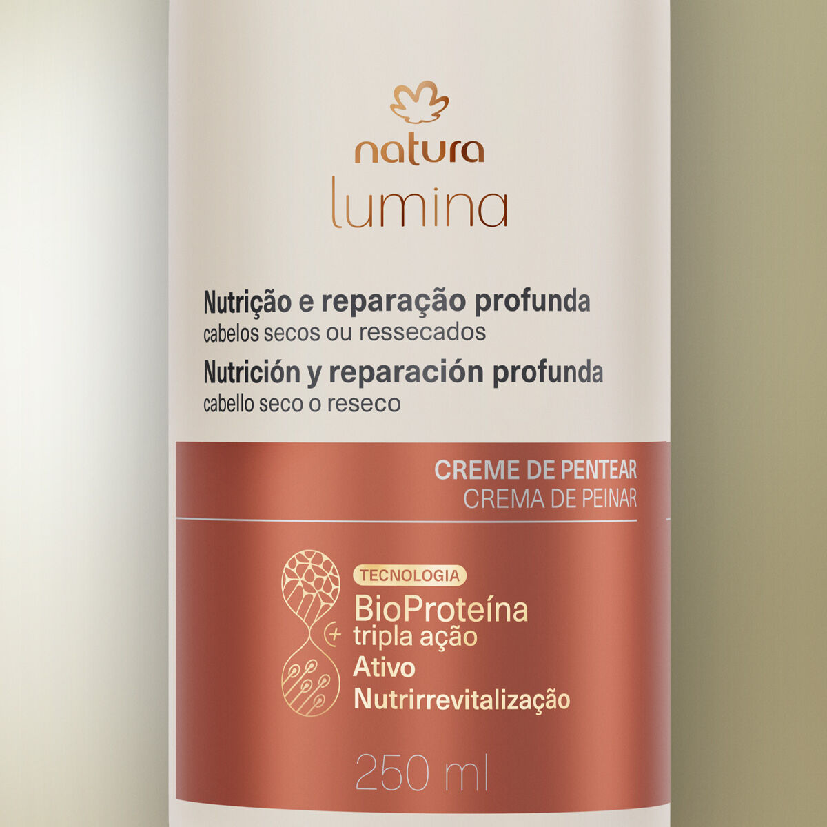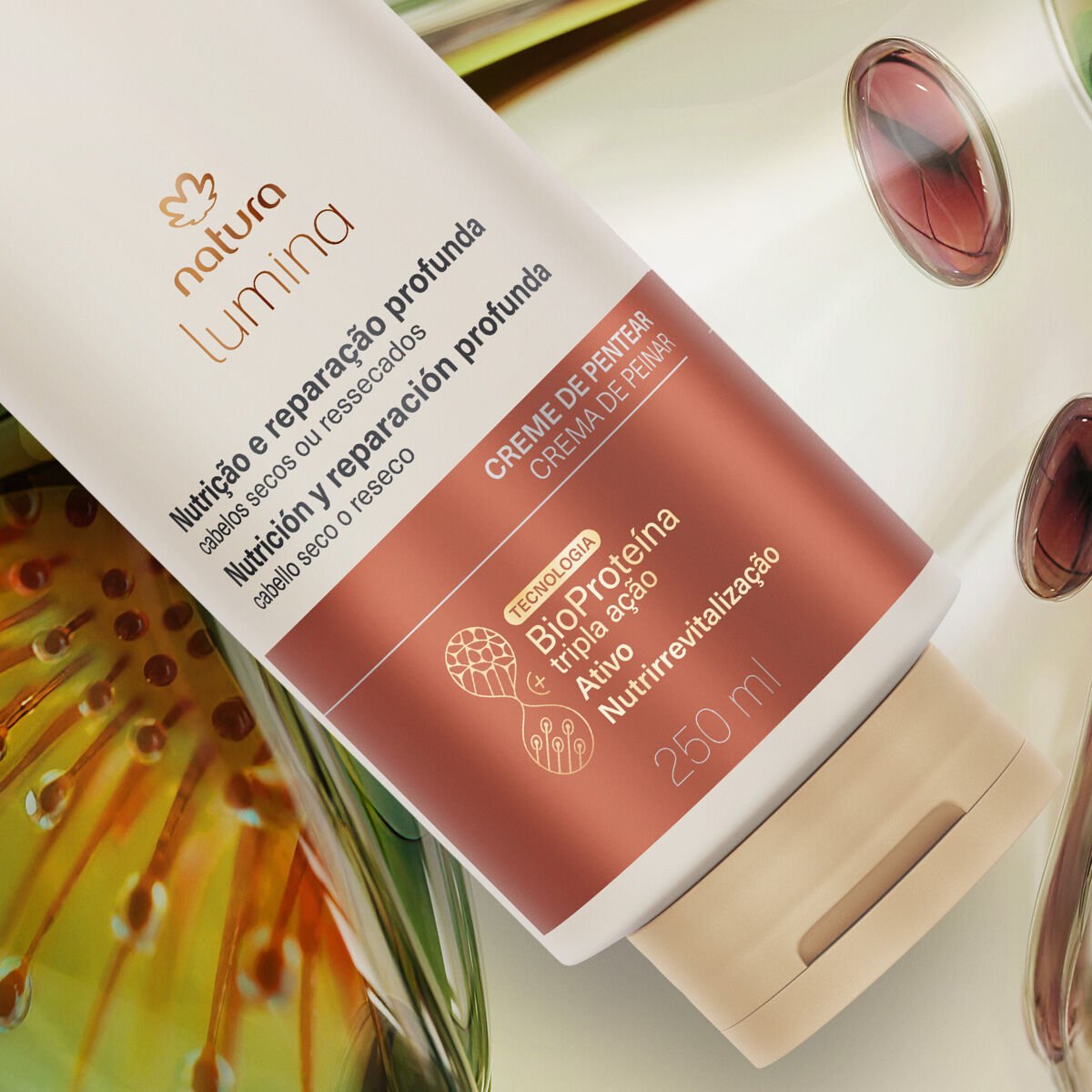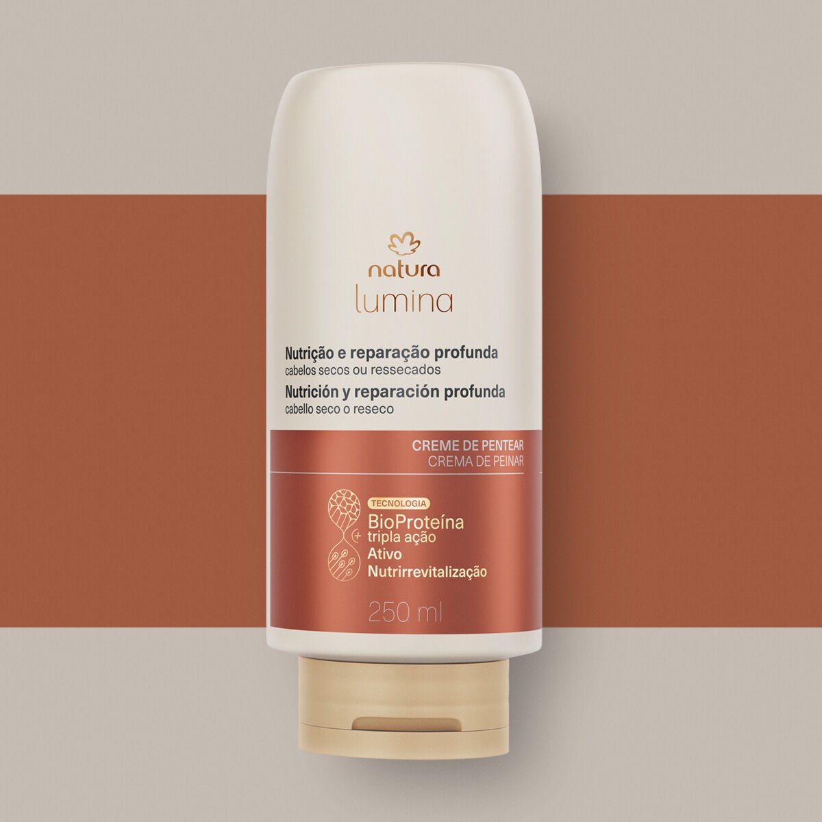 A linha para Cabelos Secos ou Ressecados de Lumina mudou! Agora o seu Sistema de Nutrição e Reparação Profunda tem novas embalagens e ainda mais tecnologia para cuidar do seu cabelo. Com BioProteína Tripla Ação e Ativo Nutrirrevitalização, esse sistema promove 2 vezes mais nutrição com reparação e selagem dos fios*. O Creme de Pentear Selador de Cutículas Cabelos Secos ou Ressecados Lumina é um passo essencial nesse ritual, com fórmula que blinda, hidrata e protege os fios.