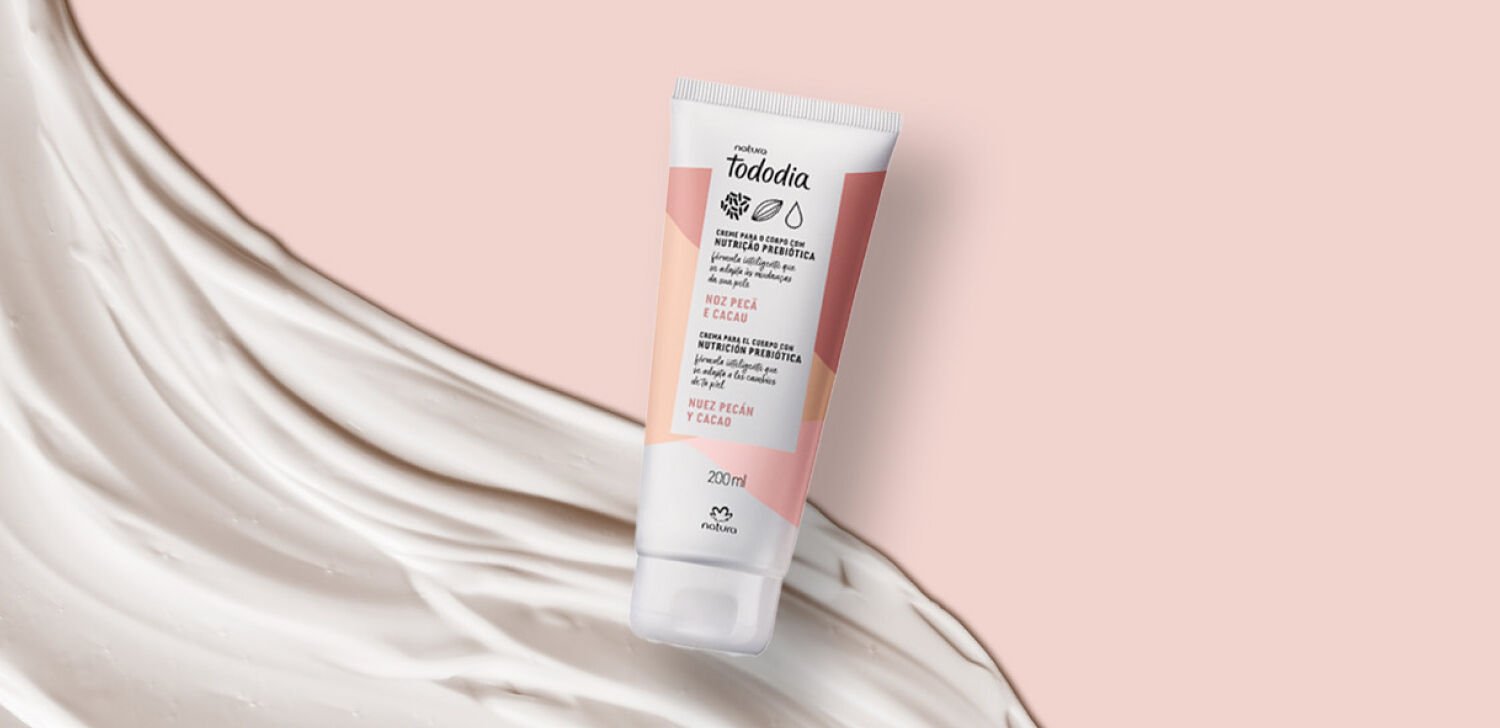 a nutrição prebiótica presente no Hidratante Natura se adapta às mudanças internas e externas, deixando sua pele cuidada, hidratada na medida certa e pronta para o que der e vier.