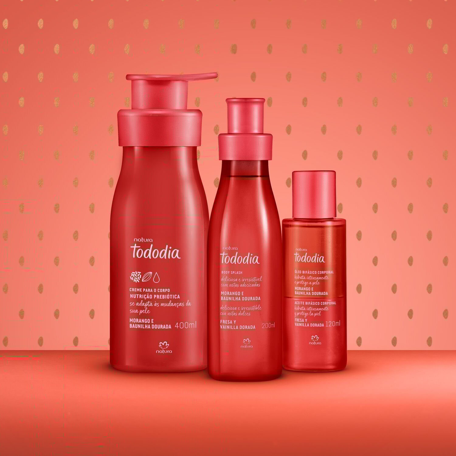 conheça a nova linha que combina hidratação potente, texturas surpreendentes e fragrância marcante. Tododia Morango e Baunilha Dourada transforma o cuidado diário em um ritual de encantamento. para que, todo dia, você se alimente de experiências memoráveis, que saem do óbvio.