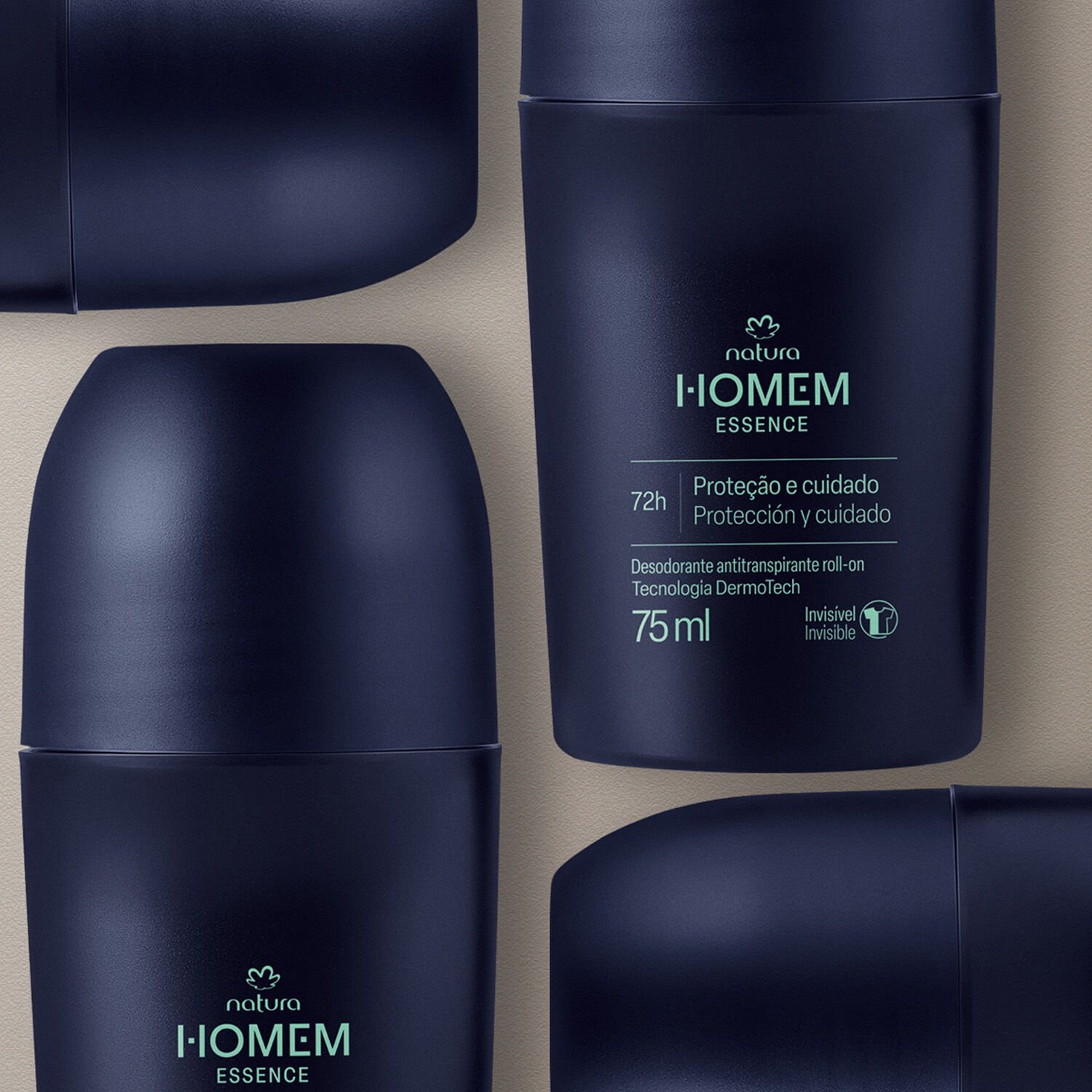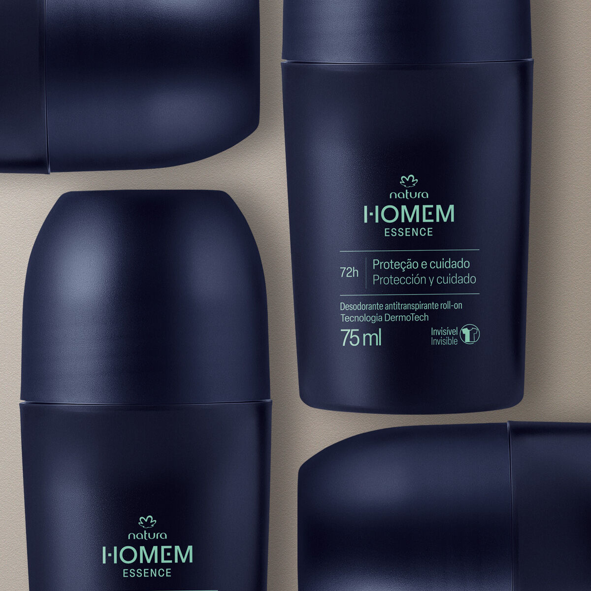 Natura Homem Essence Desodorante Antitranspirante Roll-on protege as axilas por 72h contra o suor e o mau odor.