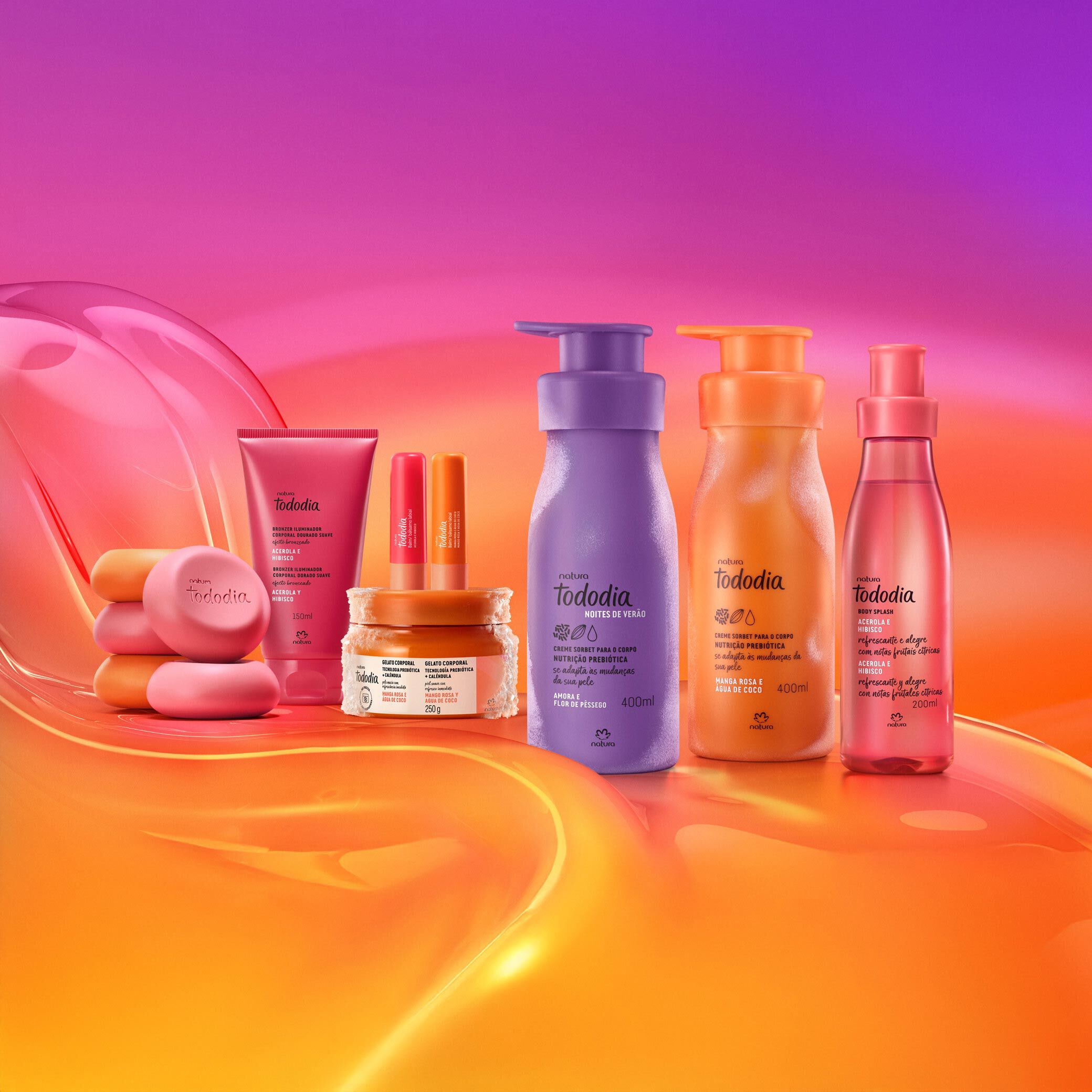 Manga Rosa e Água de Coco e Acerola e Hibisco trazem novidades perfeitas para refrescar sua pele. já a nova linha Amora e Flor de Pêssego vai te envolver como uma brisa romântica ao entardecer. no verão, Tododia oferece hidratação profunda e alívio refrescante, além de cuidado e nutrição dos fios.