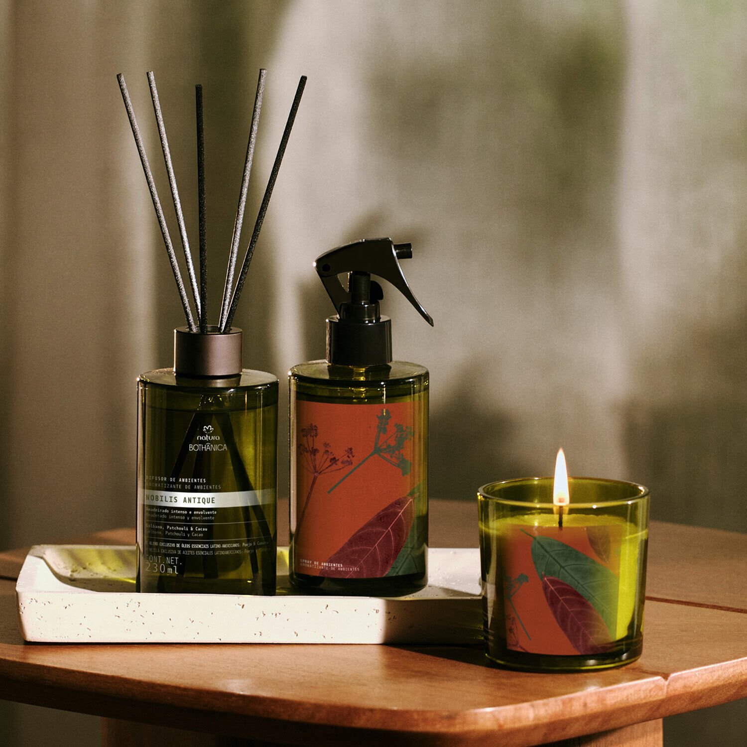 combine o difusor de ambientes com a vela e o spray de Natura Bothânica para criar a atmosfera perfeita.