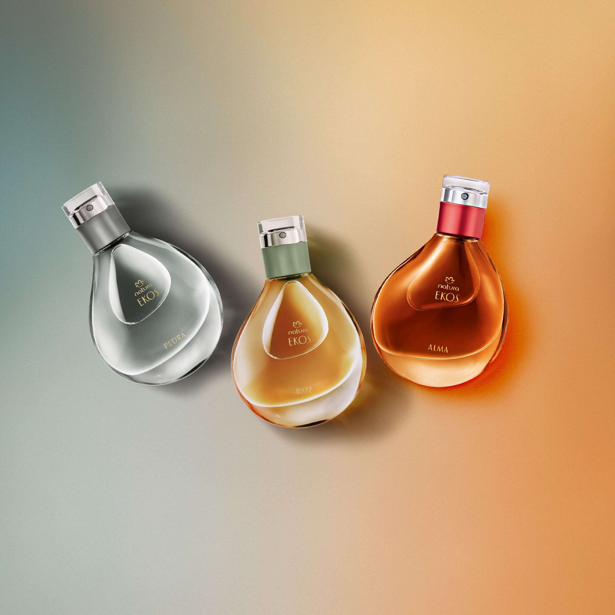 perfumes inspirados na essência originária amazônica. com óleos essenciais aromáticos raros da Amazônia, ancestralmente usados na perfumação. Ekos Raiz, Ekos Pedra e Ekos Alma são traduções da exuberância da floresta.