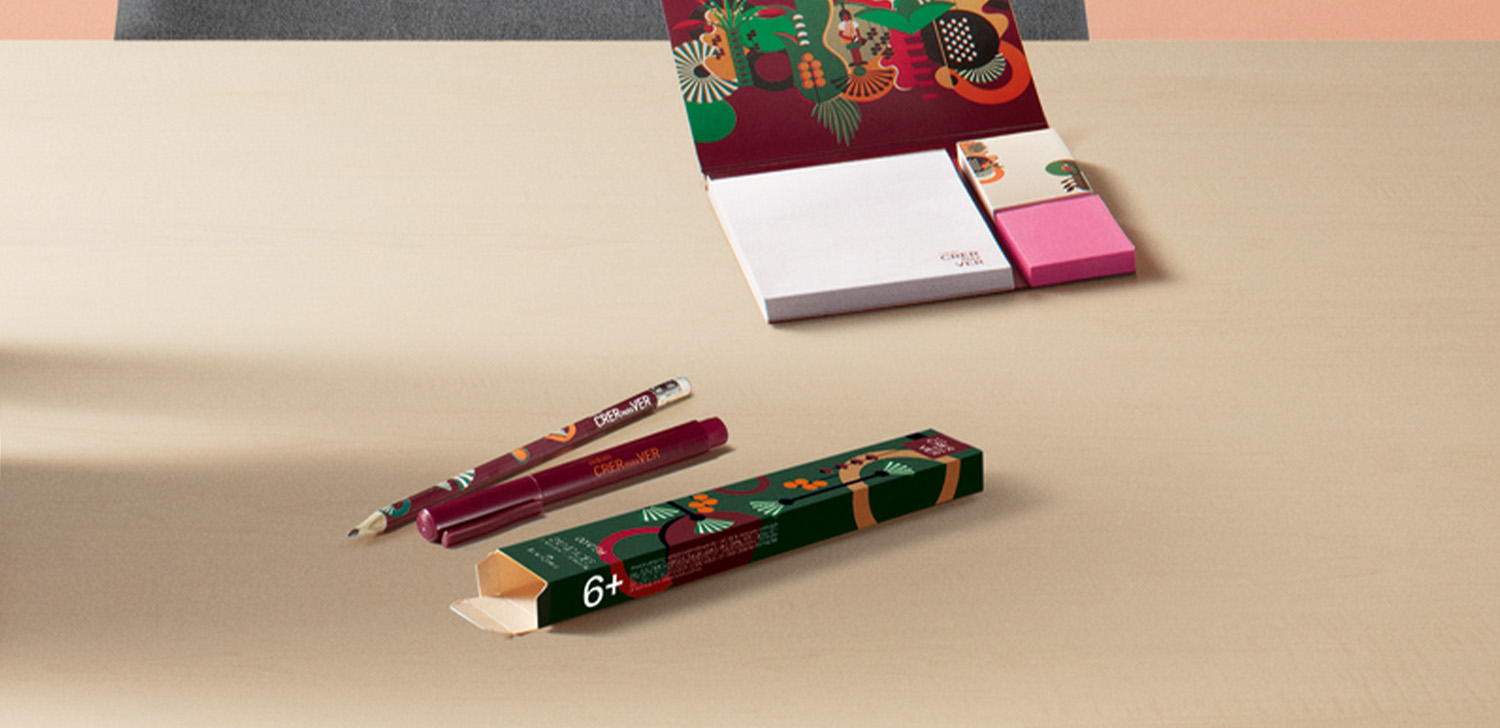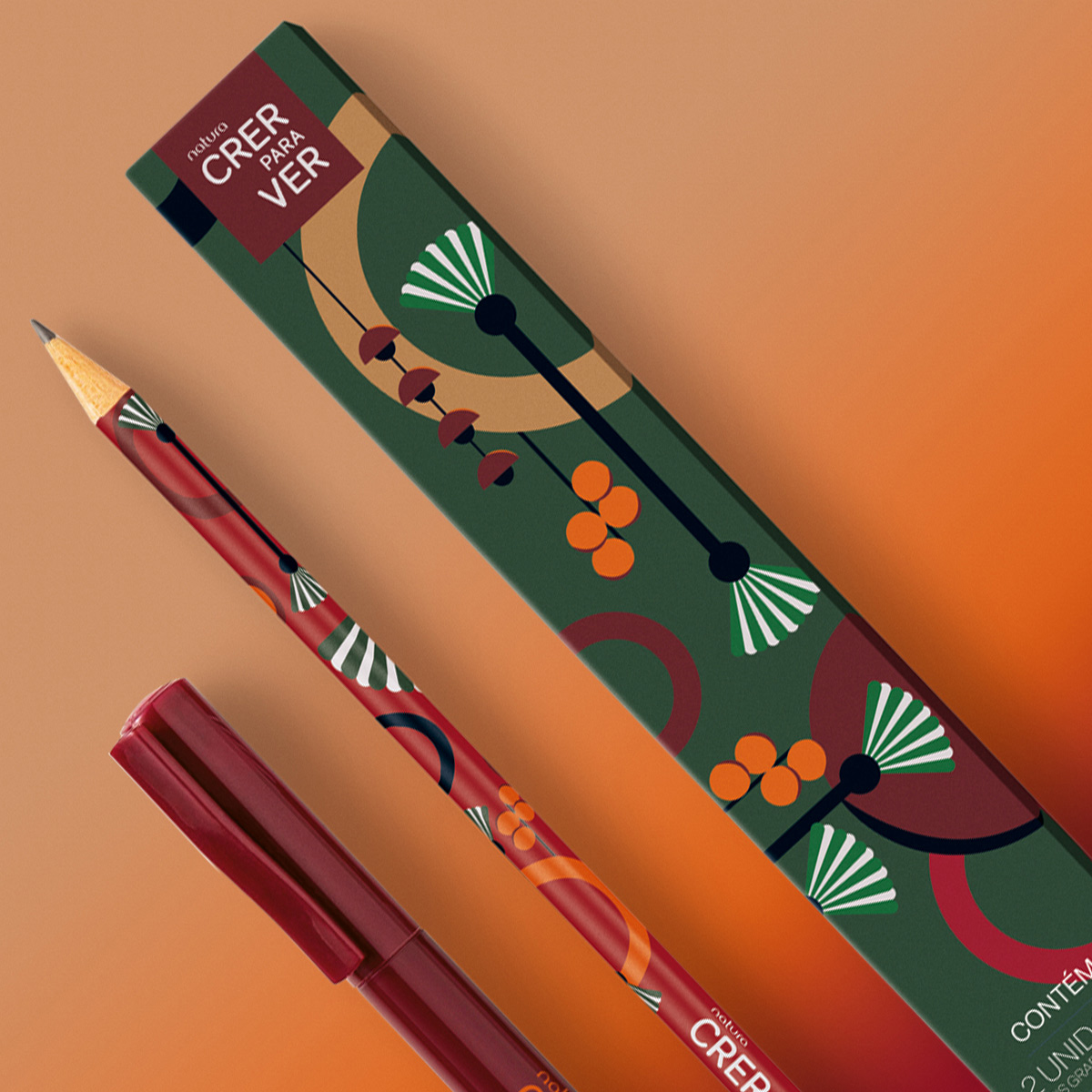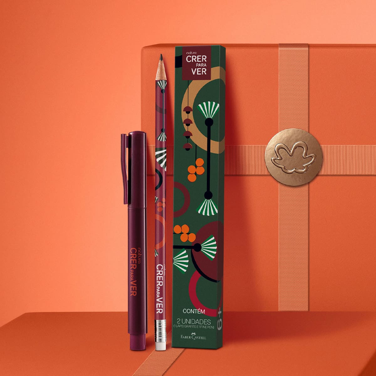 o Kit de Lápis e Caneta Crer para Ver une o lápis Faber Castell à inédita Caneta Fine Pen ergonômica de traço fino. com estampa exclusiva da artista Naia Ceschin, é versátil, moderno e ideal para escola ou trabalho, perfeito para usar, presentear e levar estilo para o dia a dia.