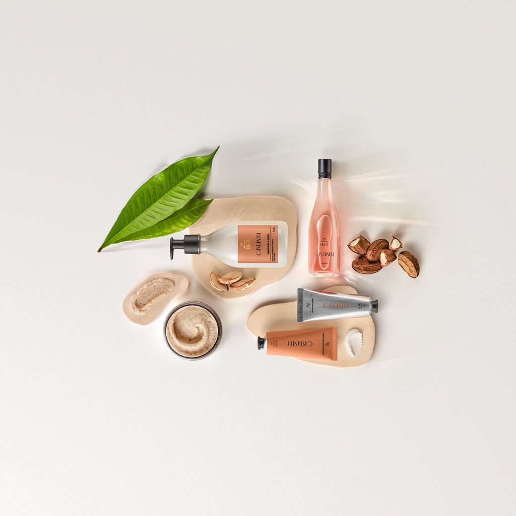 Natura Ekos traz o óleo bruto de castanha, rico em ômegas 6 e 9, que combate os sinais intensos de ressecamento. essa linha nutre e melhora a textura da pele desde a primeira aplicação.