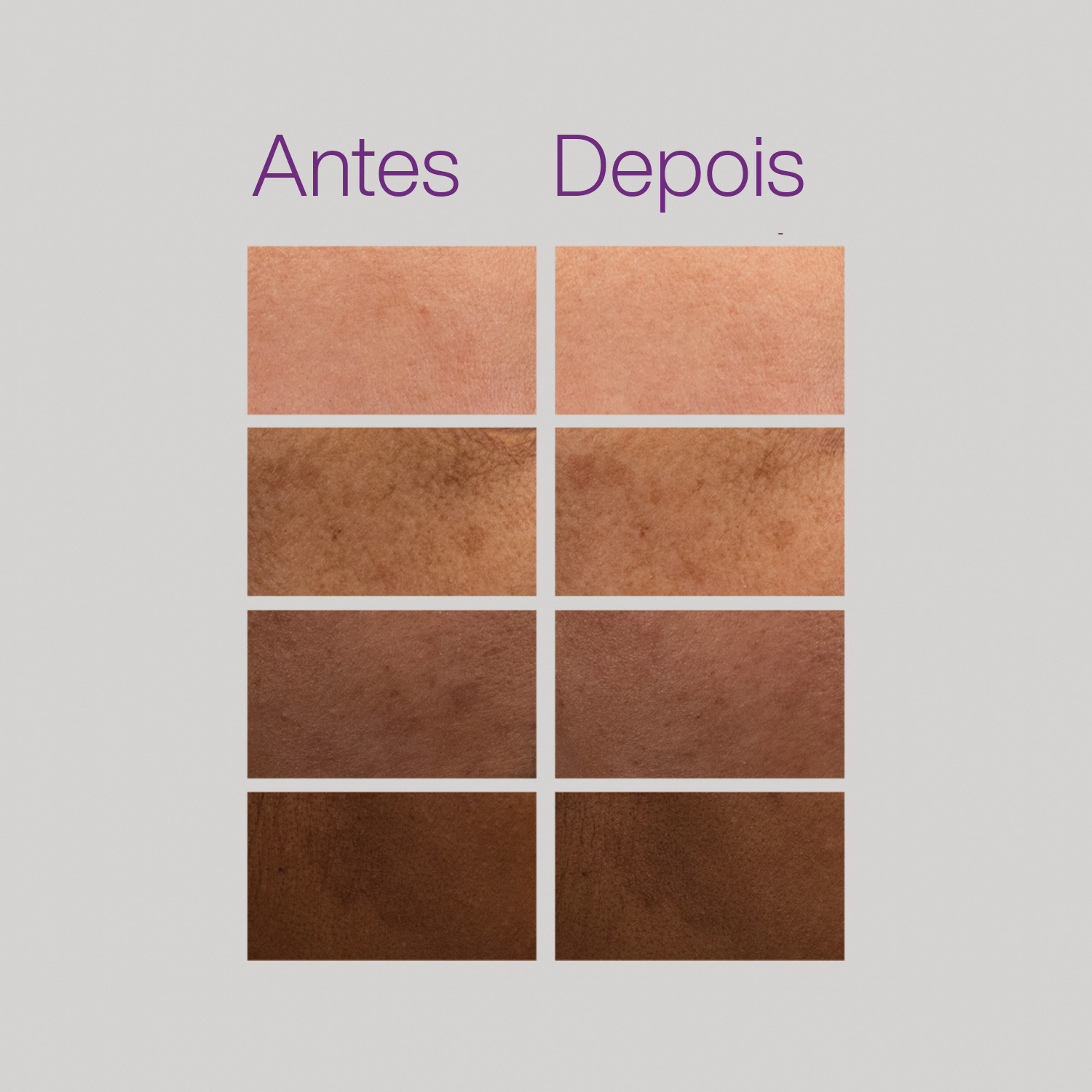 *manchas por diferenças de tonalidade da pele. ATENÇÃO: este produto não é um medicamento. para um diagnóstico, procure seu dermatologista.