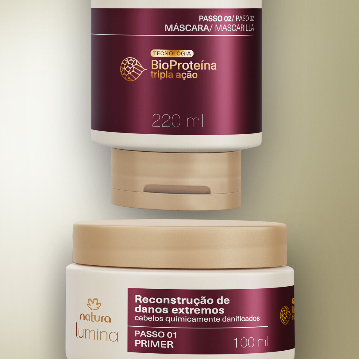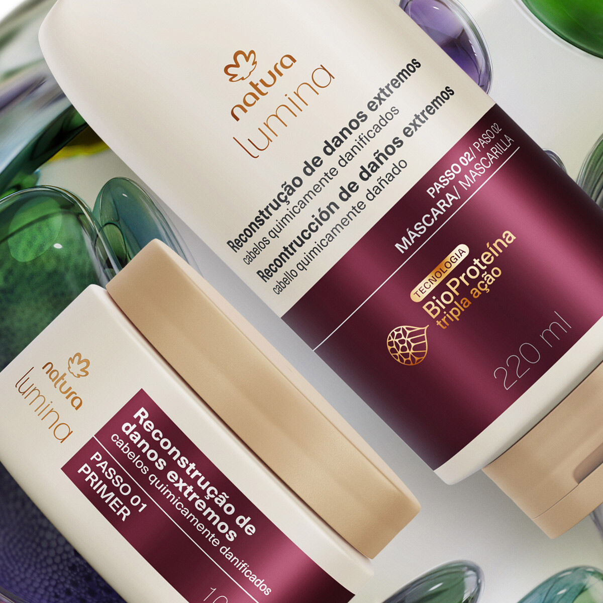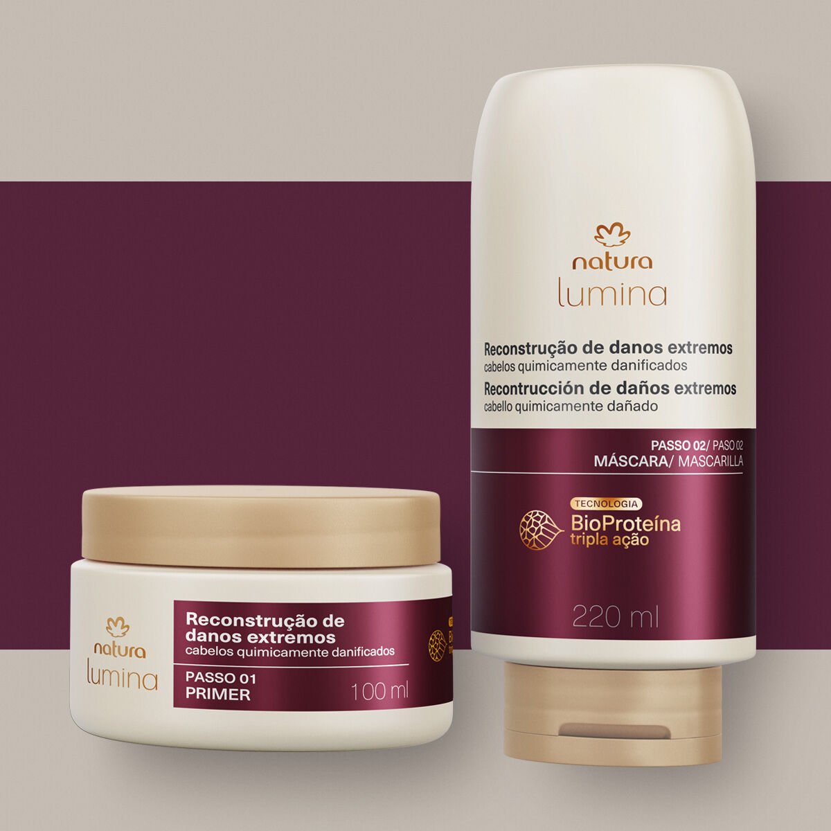 A linha para Cabelos Quimicamente Danificados de Lumina mudou! Agora o seu Sistema de Reconstrução de Danos Extremos tem novas embalagens, nova fragrância e ainda mais tecnologia para cuidar do seu cabelo. Com BioProteína Tripla Ação e Ativo Reconstrutor, esse sistema promove reconstrução de até 89% dos danos extremos e prevenção de até 2,9 vezes dos danos futuros*. O Kit Tratamento Intensivo contém dois produtos, o Primer e a Máscara, que potencializam os resultados desde a primeira aplicação.