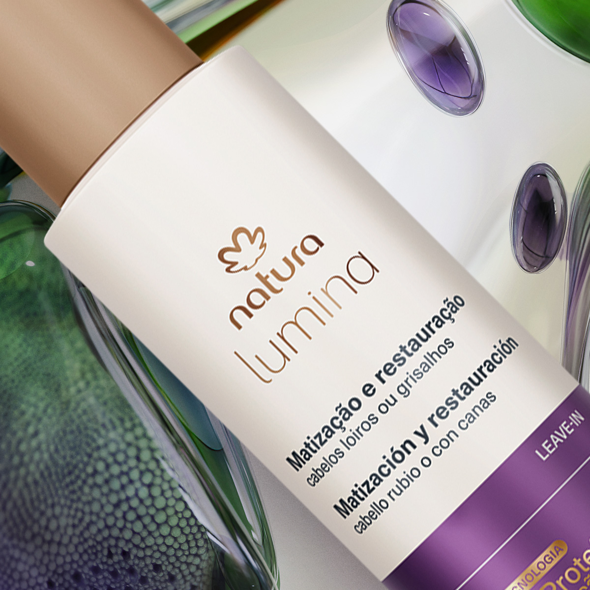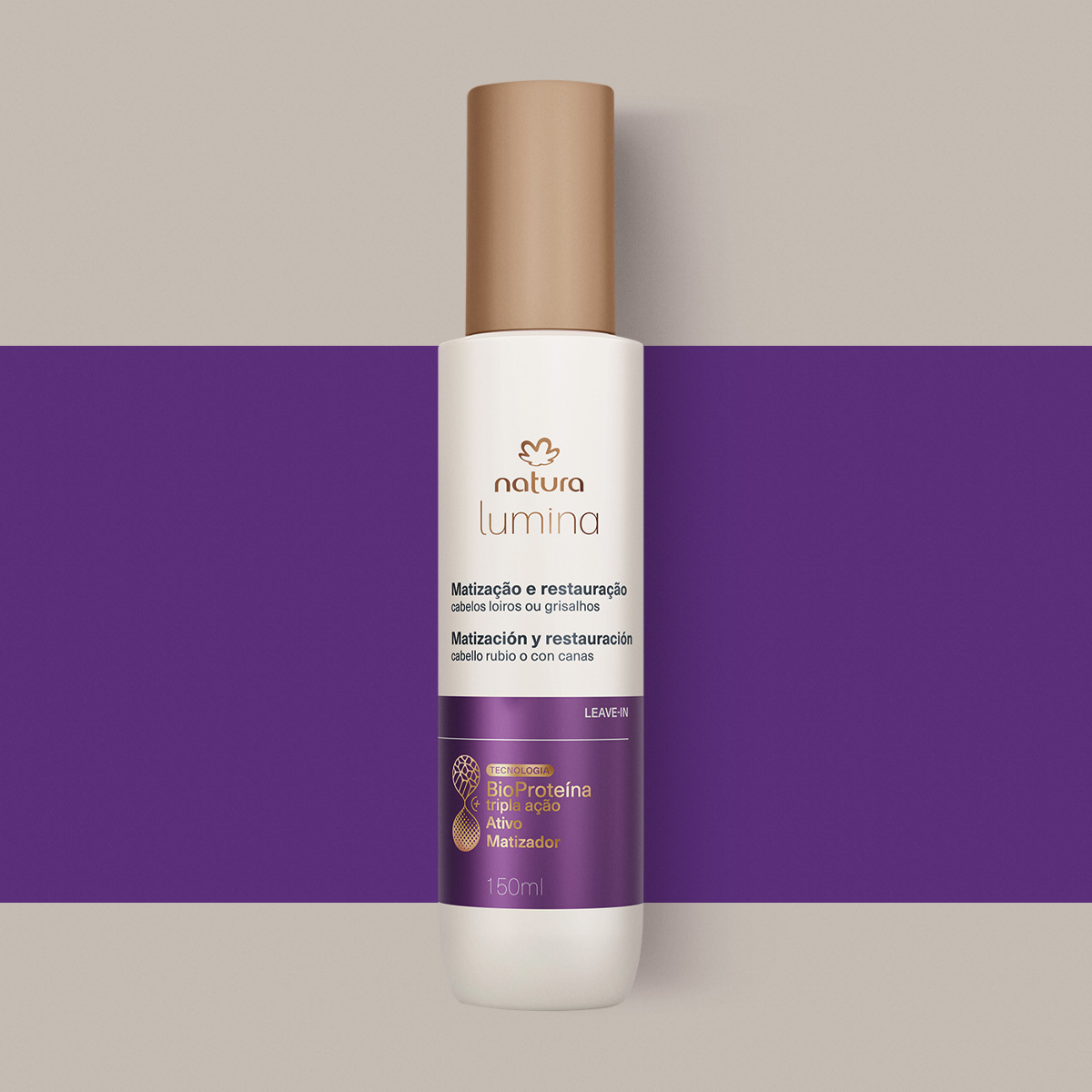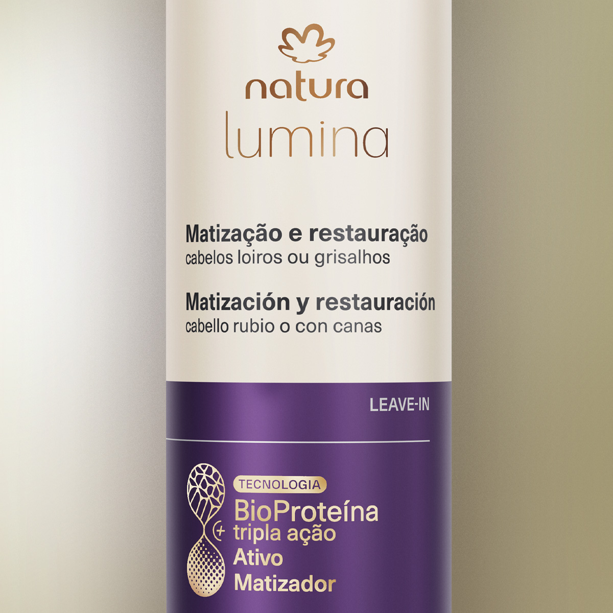 A linha para Cabelos Loiros e Grisalhos de Lumina mudou! Agora o seu Sistema de Matização e Restauração tem novas embalagens, nova fragrância e ainda mais tecnologia para cuidar do seu cabelo. Com BioProteína Tripla Ação e Ativo Matizador, esse sistema promove matização progressiva e 7 vezes mais resistência*. O Leave-in Matizador para Cabelos Loiros e Grisalhos Lumina é um passo essencial nesse ritual, com fórmula que promove matização intensa e múltiplos benefícios.