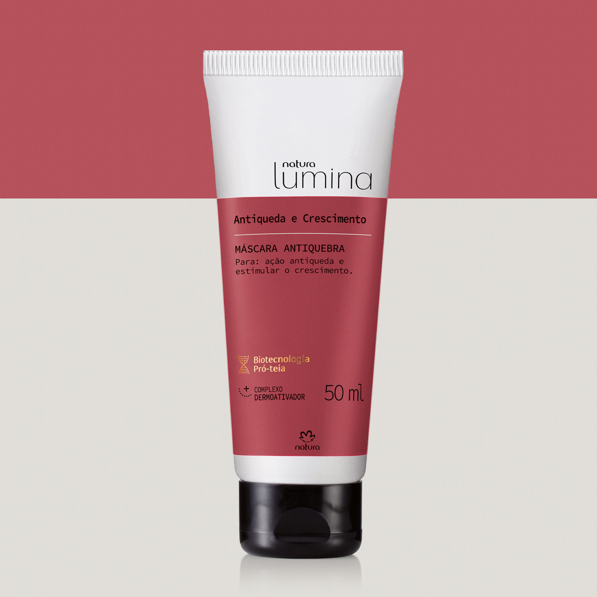 A Máscara Antiquebra Para Antiqueda e Crescimento Lumina possui ação progressiva fortalecedora antiqueda, atuando em todas as camadas para dar mais resistência e força aos fios. Esta versão miniatura com 50 ml é ideal para experimentar ou levar em viagens.