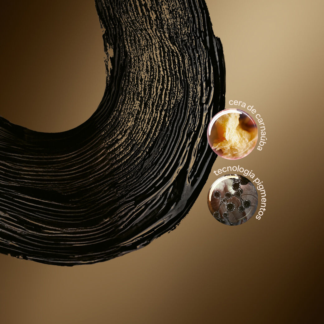 • máscara de cílios com pigmentos extremamente pretos que cobrem completamente os cílios