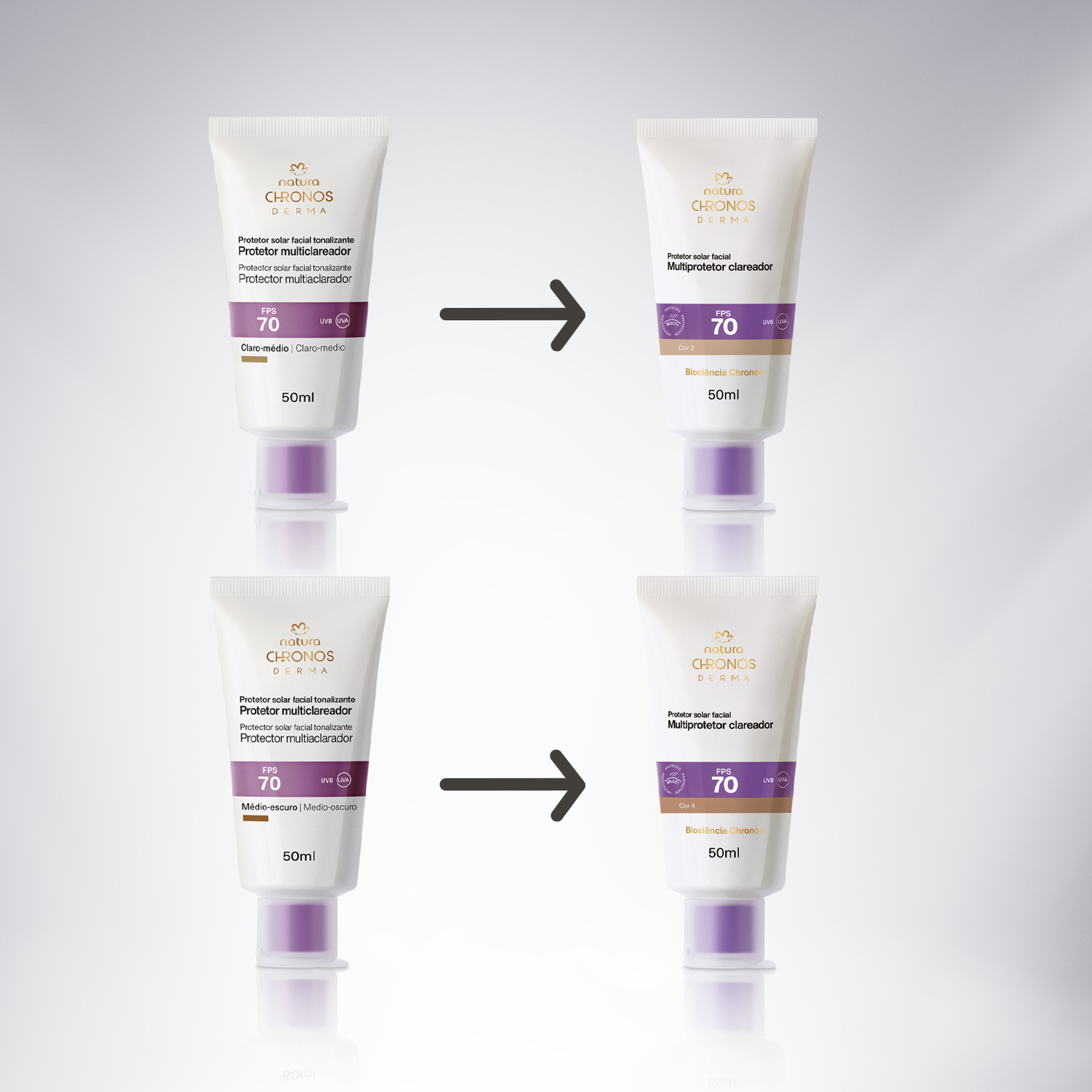 a paleta de cores aumentou e a fórmula ficou mais potente, mas sua cor favorita continua existindo. a antiga claro-médio agora é COR 2. a antiga médio-escuro agora é COR 4.