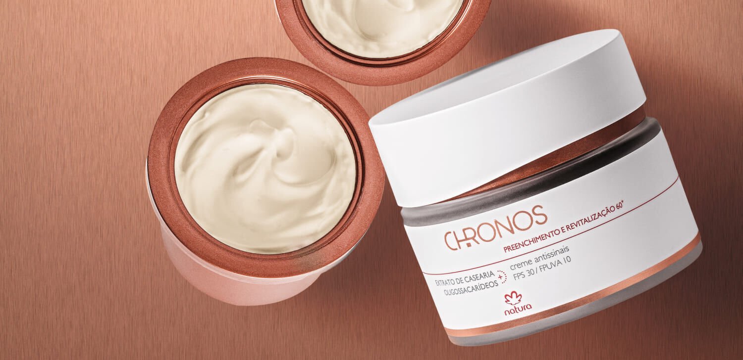 a tecnologia 60+ da Natura combina o extrato de casearia, que intensifica a produção de ácido hialurônico, com oligossacarídeos, que melhoram a comunicação celular. a fórmula contém pataqueira, acessada através do conhecimento tradicional de associações locais, fortalecendo e sustentando a pele.