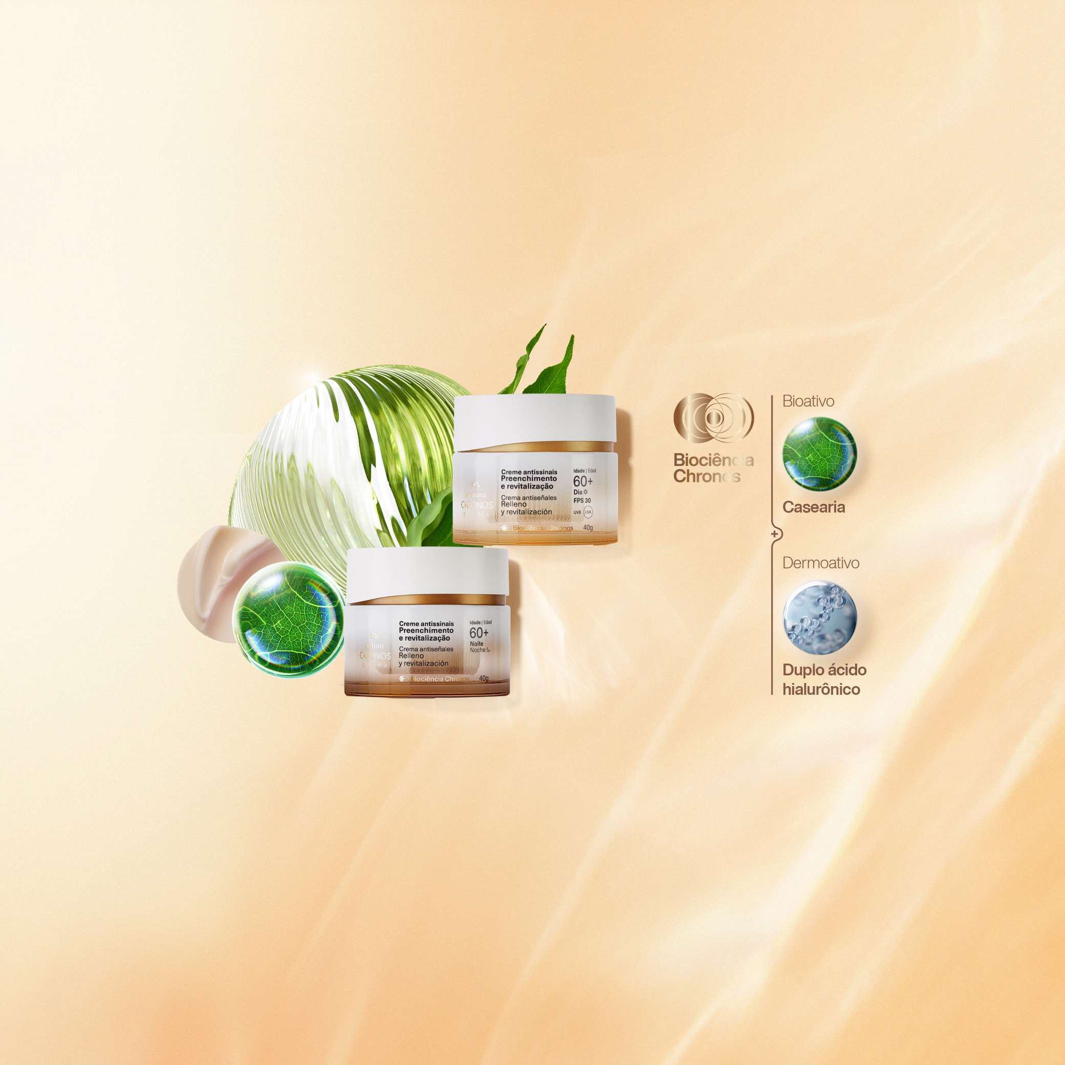 o Creme Antissinais 60+ Noite reorganiza o ciclo natural das funções da pele e promove hidratação ativa. sua fórmula preenche e melhora o contorno facial. além de tratar os sinais do envelhecimento. com resultados reais e comprovados por dermatologistas.