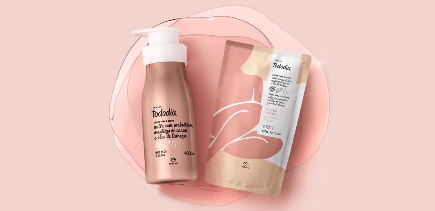 a nutrição prebiótica presente no Hidratante Natura se adapta às mudanças internas e externas, deixando sua pele cuidada, hidratada na medida certa e pronta para o que der e vier.