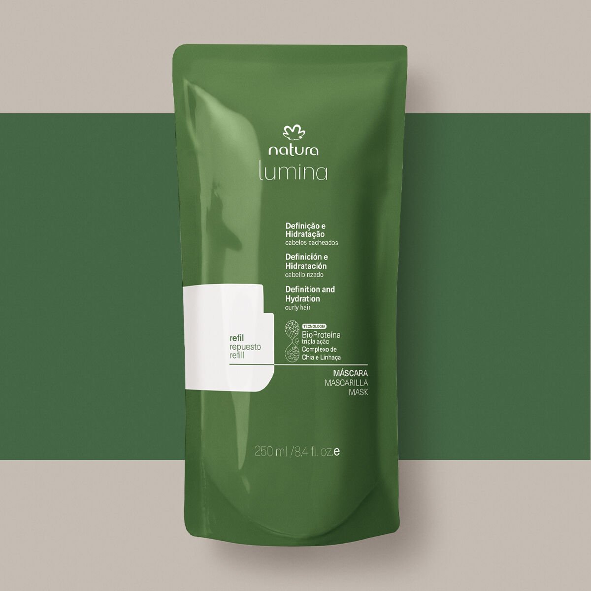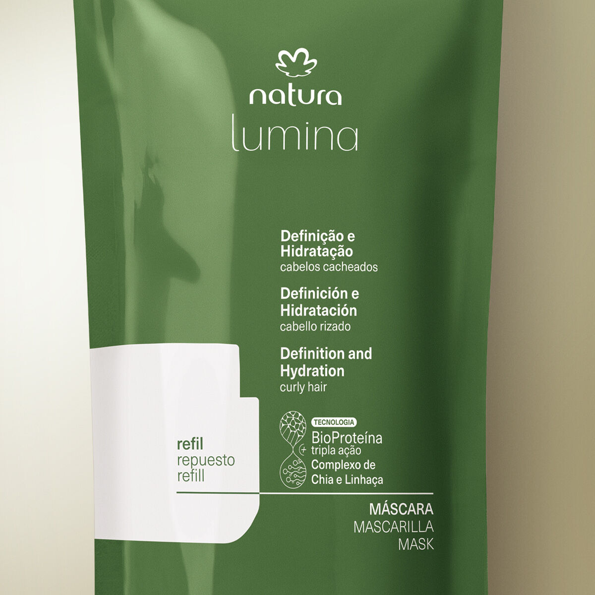 A linha para Cabelos Cacheados de Lumina mudou! Agora o seu Sistema de Definição e Hidratação tem novas embalagens, nova fragrância e ainda mais tecnologia para cuidar do seu cabelo. Com BioProteína Tripla Ação e Complexo de Chia e Linhaça, esse sistema promove cachos 85% mais definidos e com 5 vezes mais hidratação*. A Máscara Recuperadora para Cabelos Cacheados Lumina é um passo essencial nesse ritual, com fórmula que hidrata profundamente os fios, deixando-os 4 vezes mais macios e com 51% mais brilho.