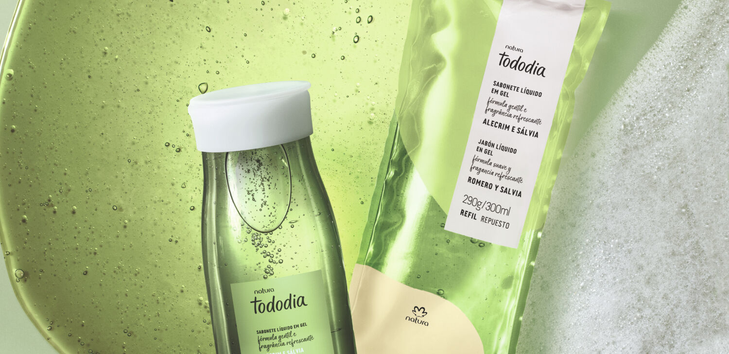 a versão refil do seu Sabonete Líquido em Gel Tododia conta com menos plástico em sua embalagem e é mais econômica. sua textura em gel forma uma espuma abundante e cremosa com uma fragrância refrescante com toque herbal para deixar o seu banho ainda mais revigorante.