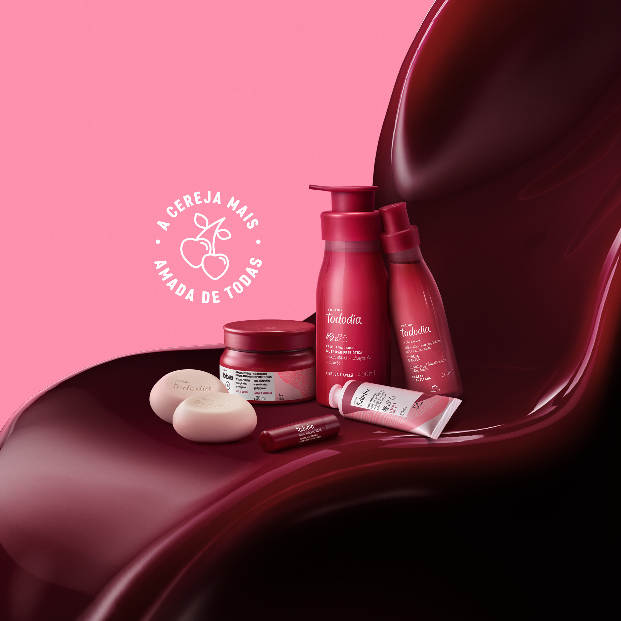 Cereja e Avelã voltou para despertar seu lado mais confiante, com rotinas irresistíveis de hidratação perfumada.