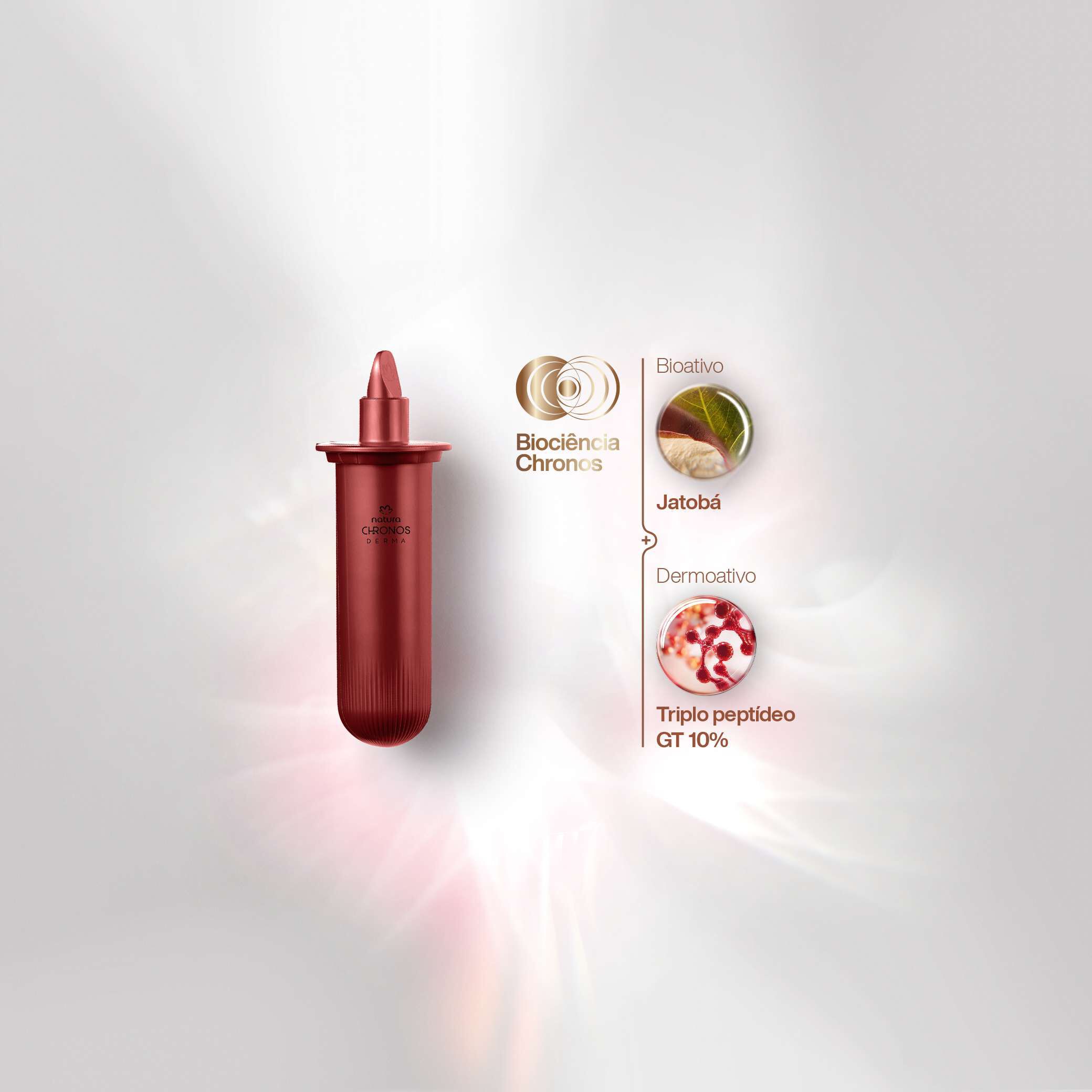 união de potentes bioativos da natureza e dermoativos para cuidar da sua pele. o bioativo Jatobá protege e aumenta a produção do colágeno natural da pele. já o dermoativo Triplo Peptídeo – GT 10% tem efeito lifting e aumento da produção dos 3 principais tipos de colágenos da pele.
