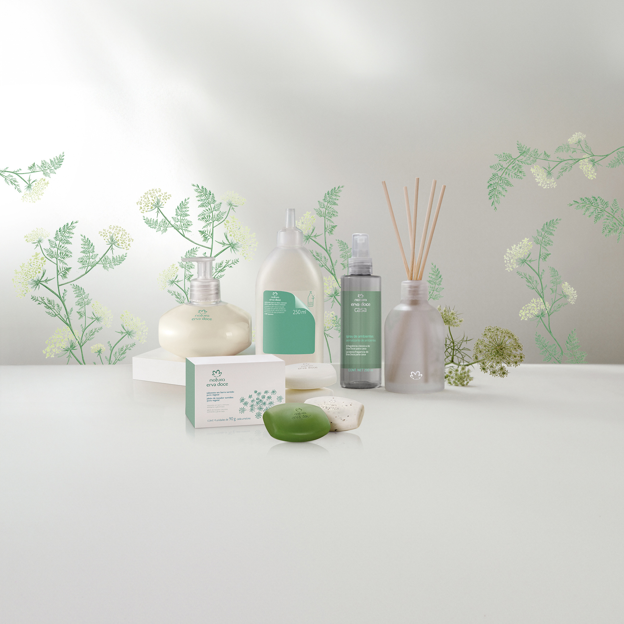a fragrância de Natura Erva Doce se consagrou ao longo de 40 anos. mais do que um simples aroma, uma verdadeira fonte de memórias que te acompanham em momentos de autocuidado. agora, essa sensação se estende no cuidado da sua casa.